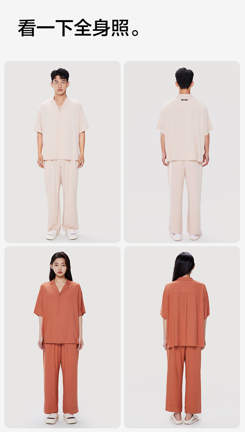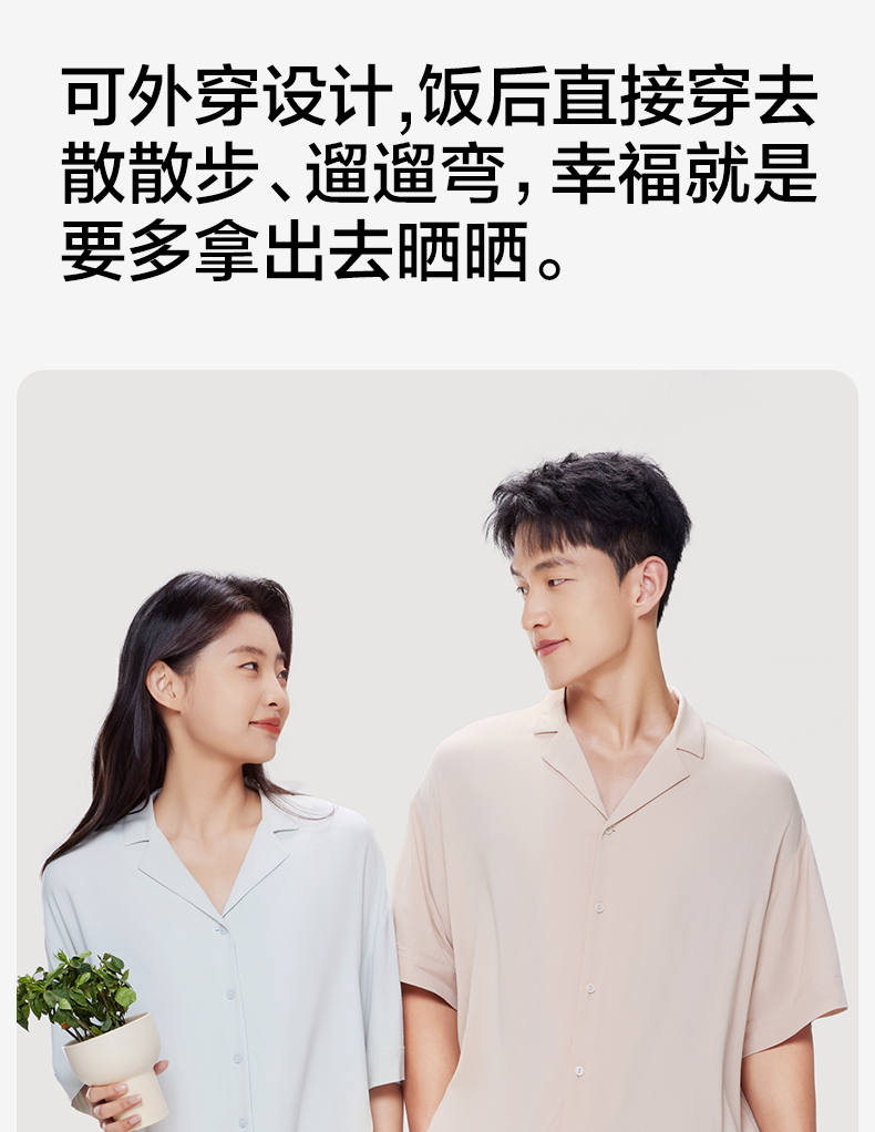 有棵树夏季冰丝开衫情侣家居服套装E-L1020