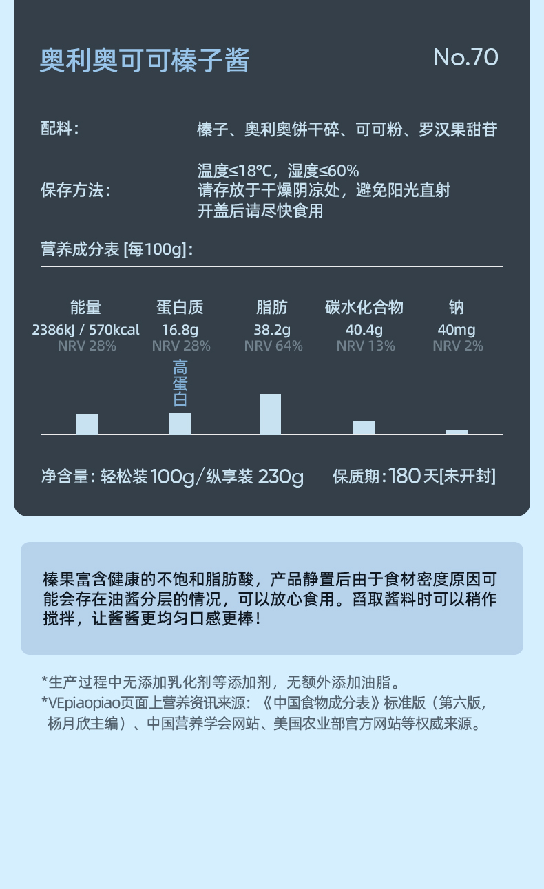 VEpiaopiao No.70 奥利奥可可榛子酱【抹酱/饮品/三明治】