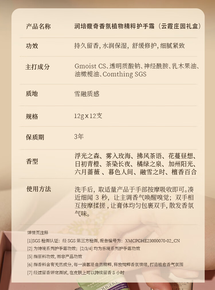 润培香氛滋润保湿护手霜生日礼物伴手礼云霞庄园礼盒 12g*12支/盒