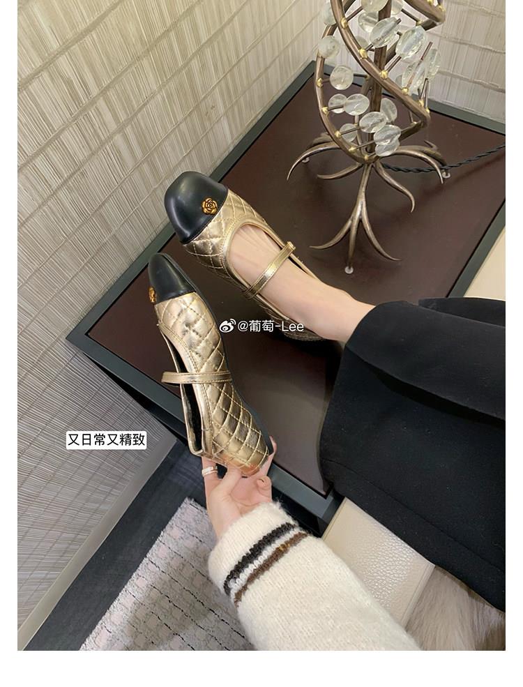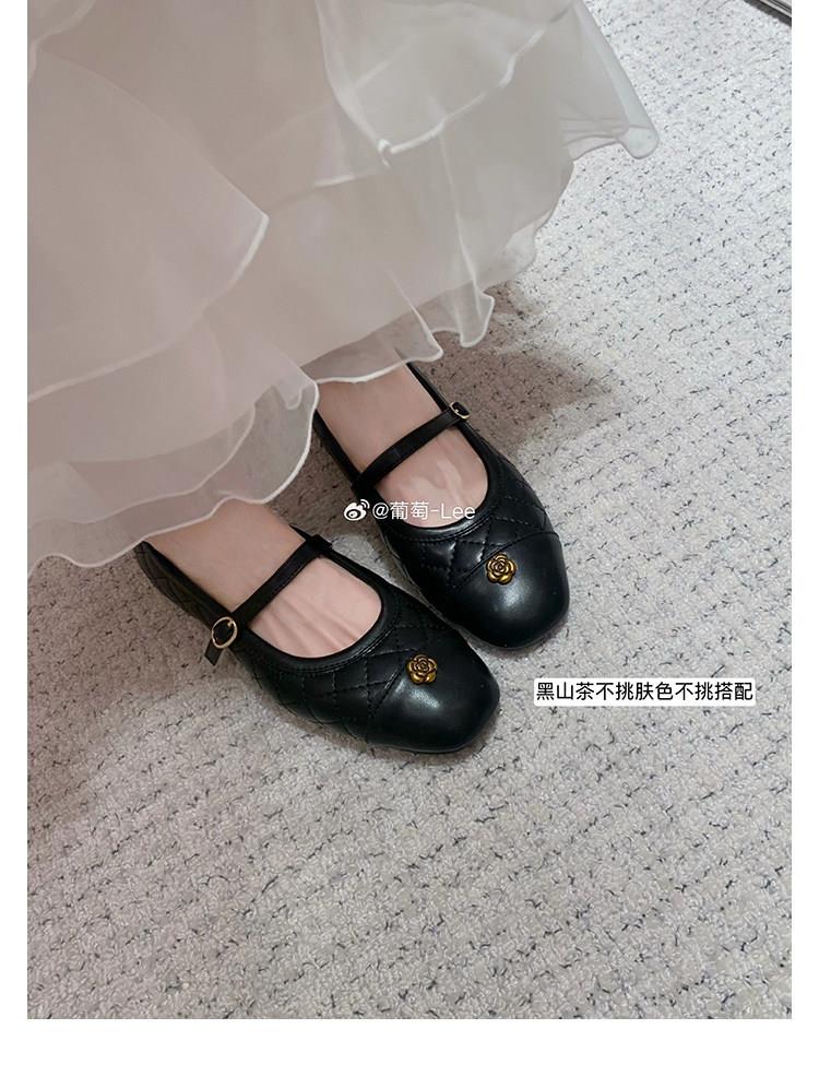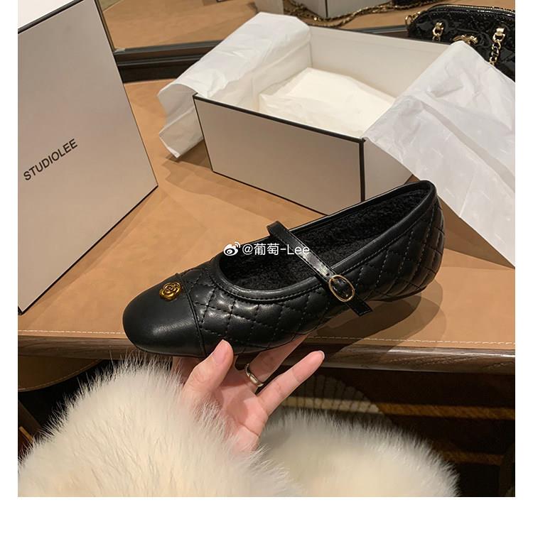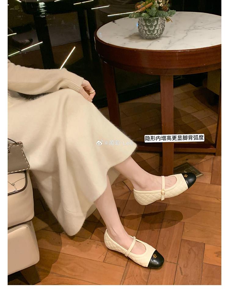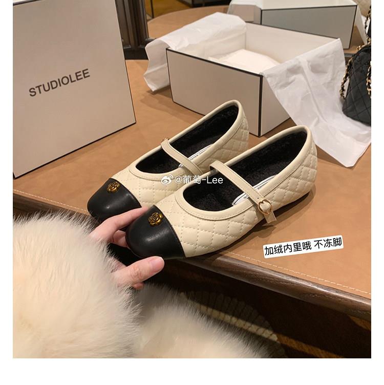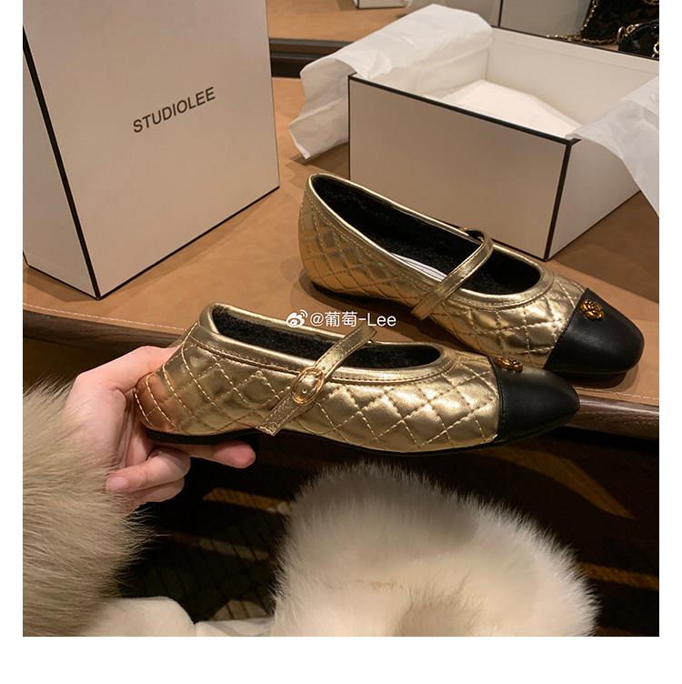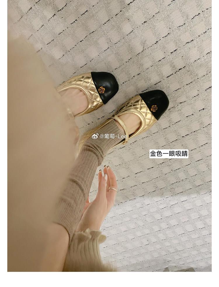 羊皮小香风玛丽珍!金扣山茶花小香风菱格拼色内增高玛丽珍鞋女