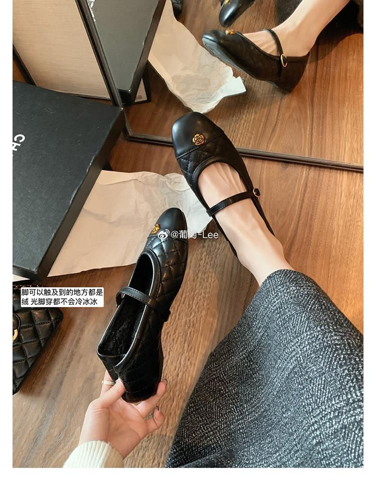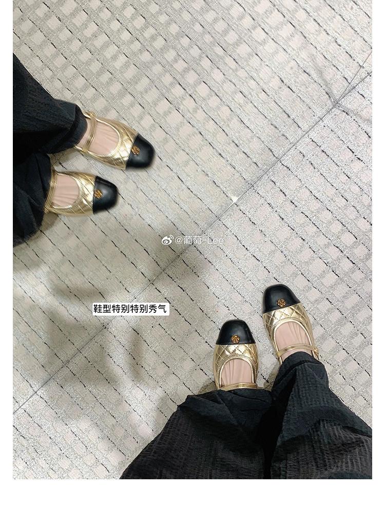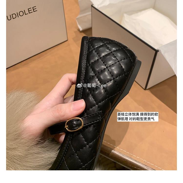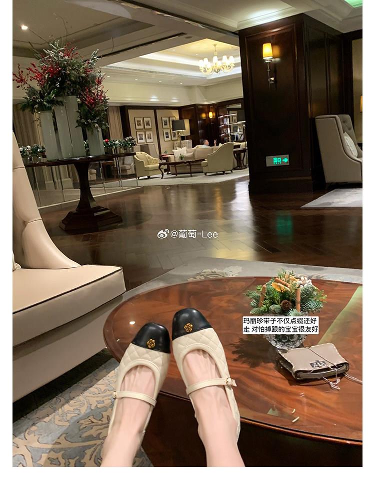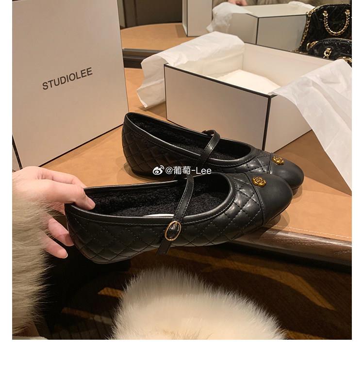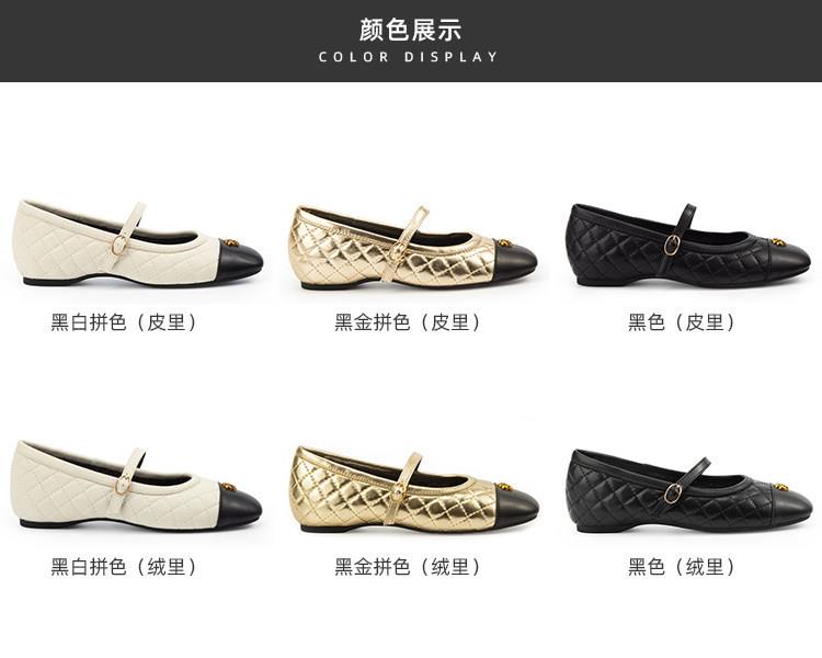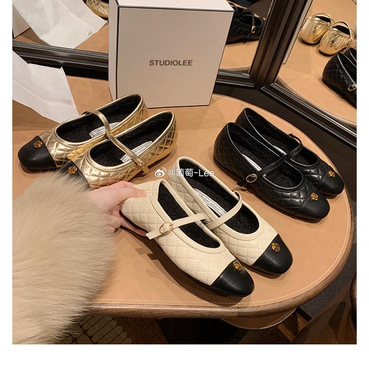 羊皮小香风玛丽珍!金扣山茶花小香风菱格拼色内增高玛丽珍鞋女