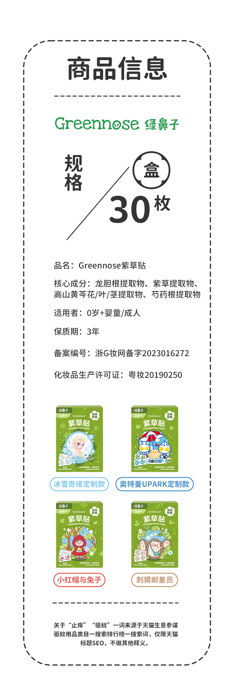 绿鼻子紫草舒缓贴婴儿专用儿童宝宝蚊虫蚊子叮咬止痒膏非驱蚊贴