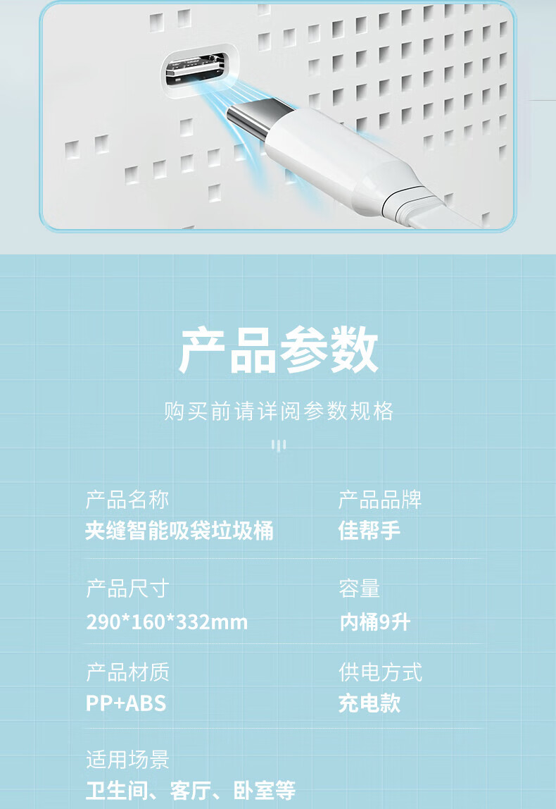 佳帮手 智能垃圾桶 垃圾桶N21大盖充电款-佳白JBS-LJT-N21D2-JWT