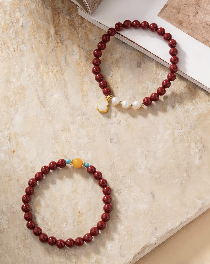 【材质】朱砂、淡水珍珠