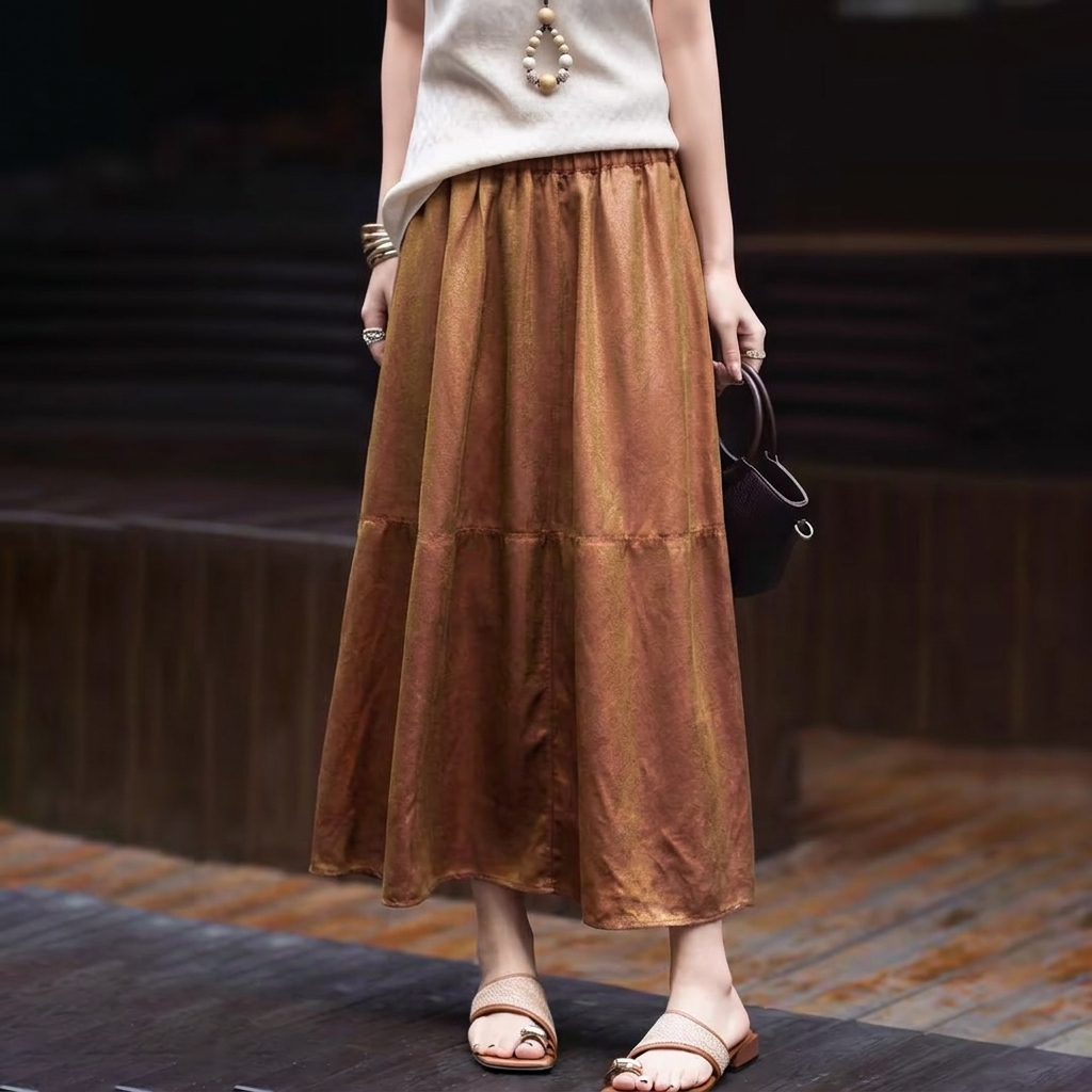 流光溢彩~暗纹提花灯笼裙时尚气质显瘦百搭中长裙BSQ2617