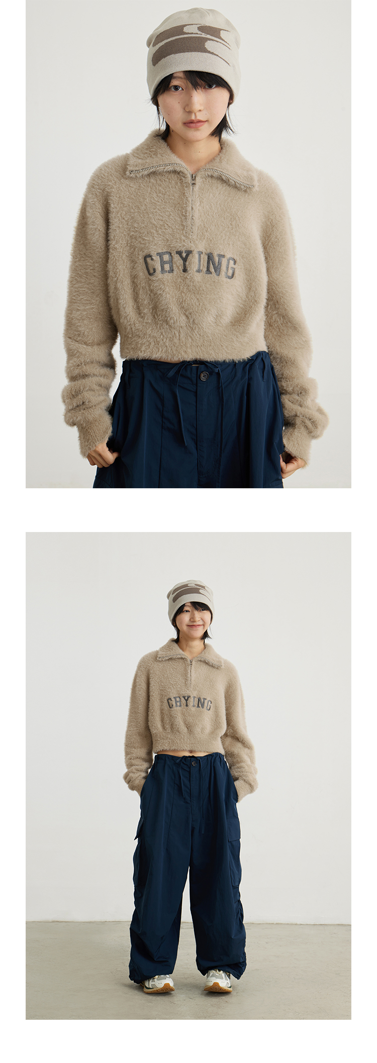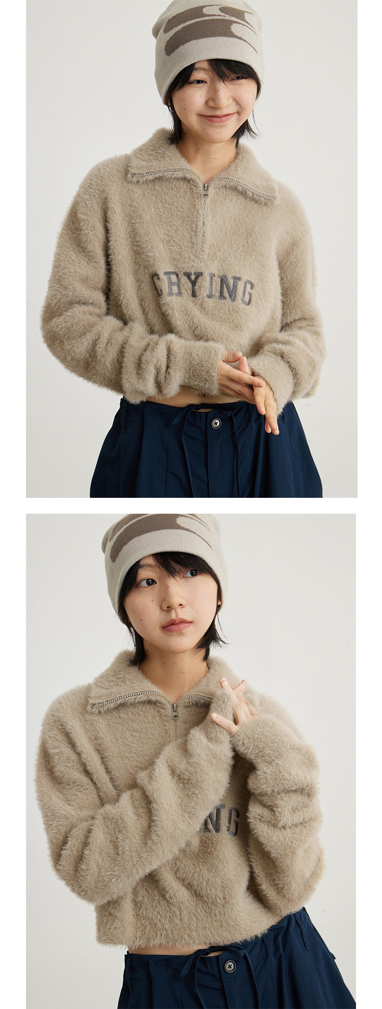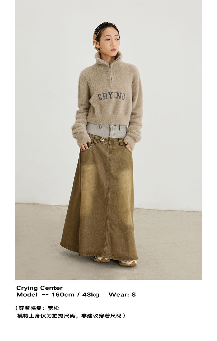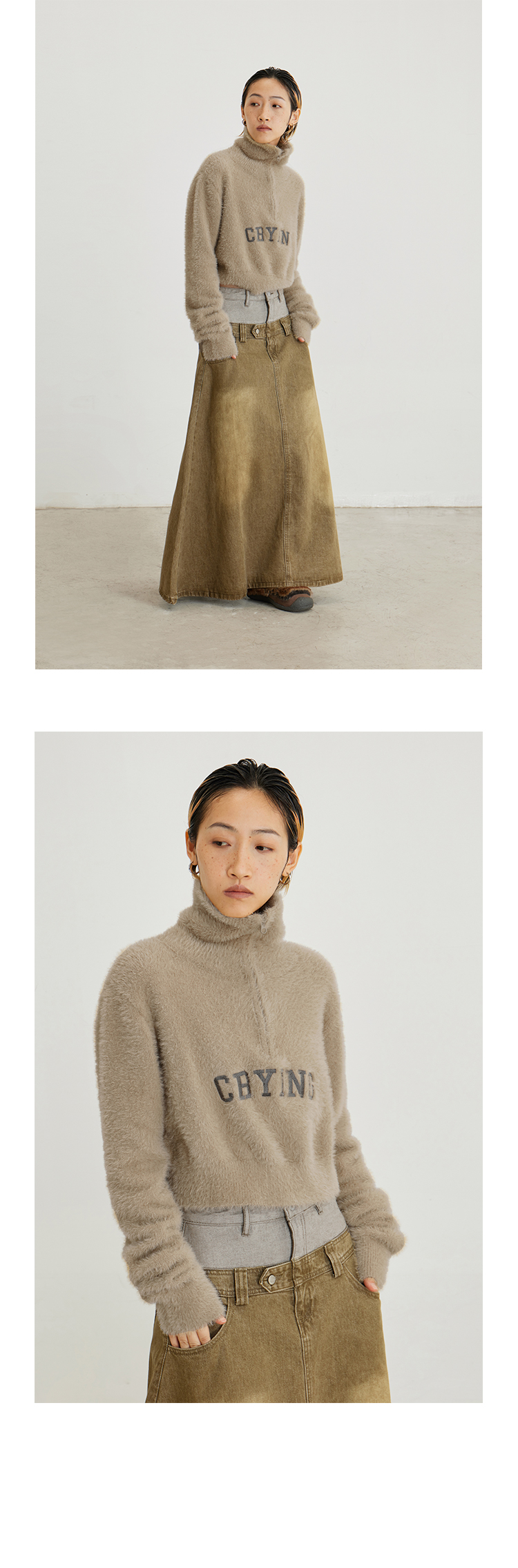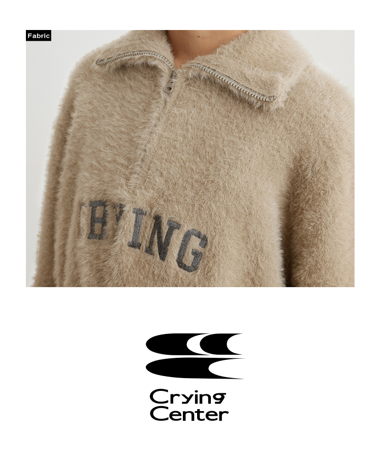 CryingCenter 卡其软糯仿浣熊毛绒高领拉链领毛衣 哭喊中心