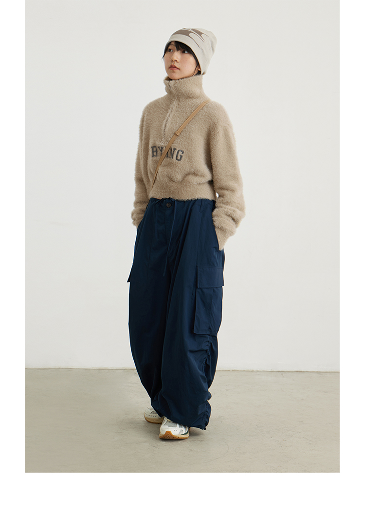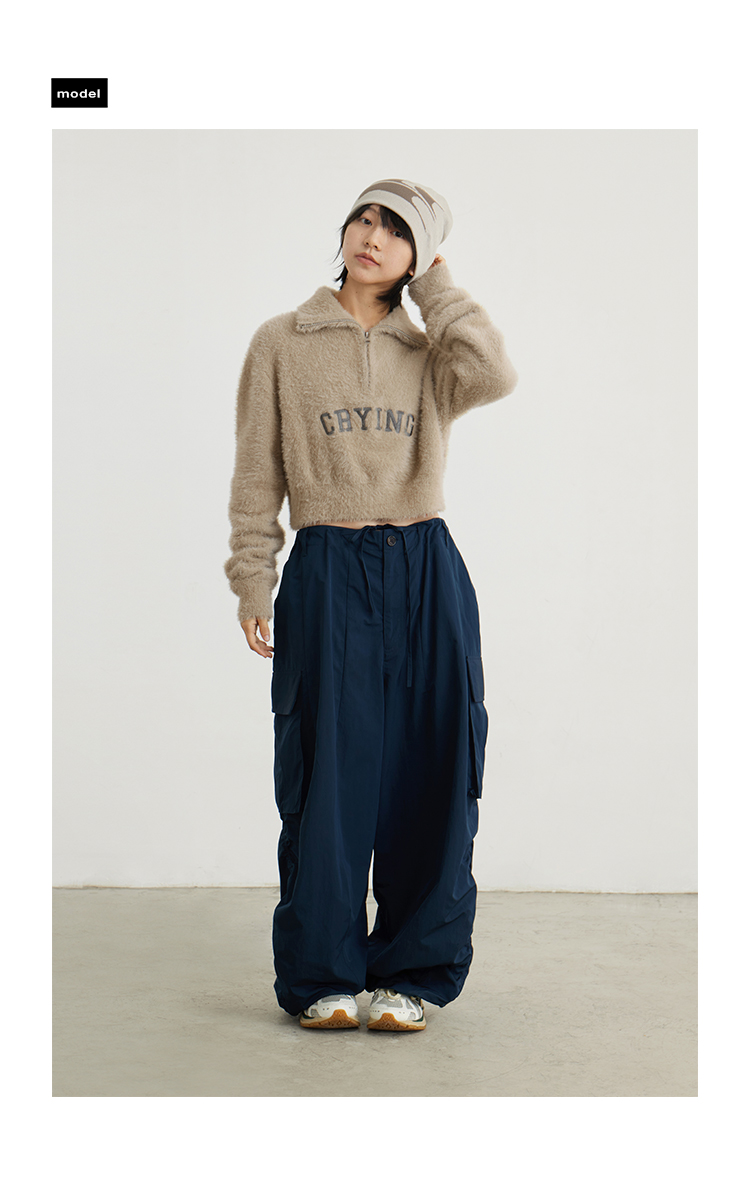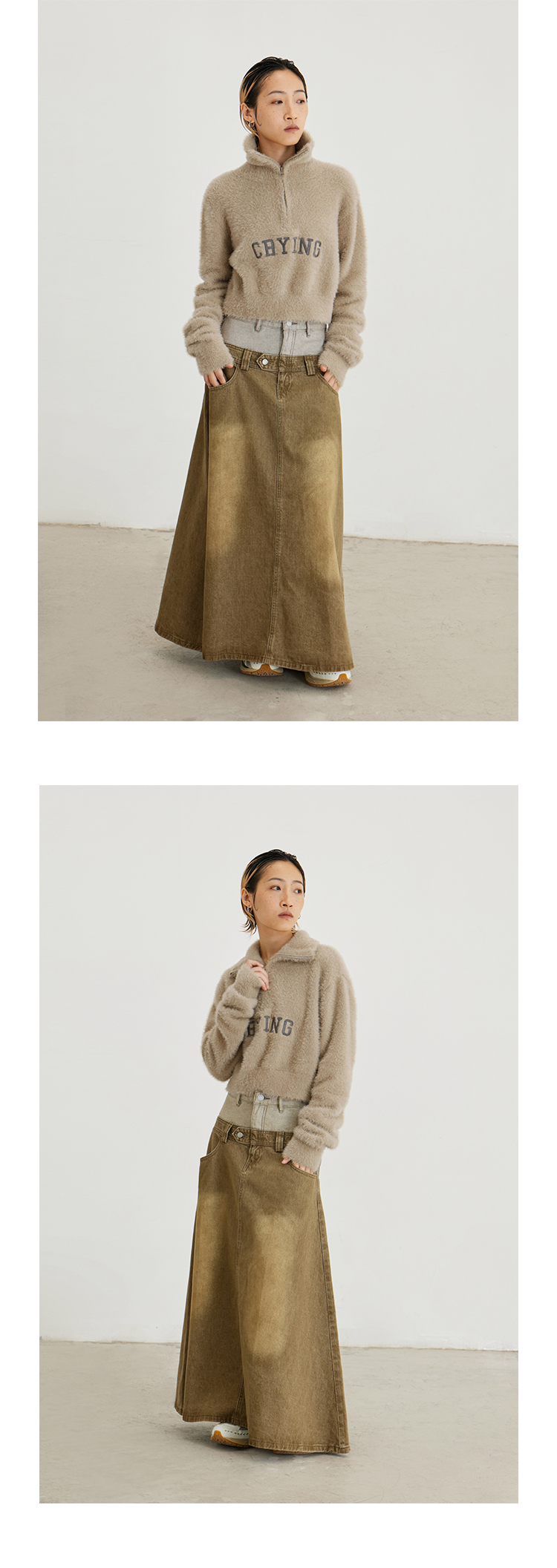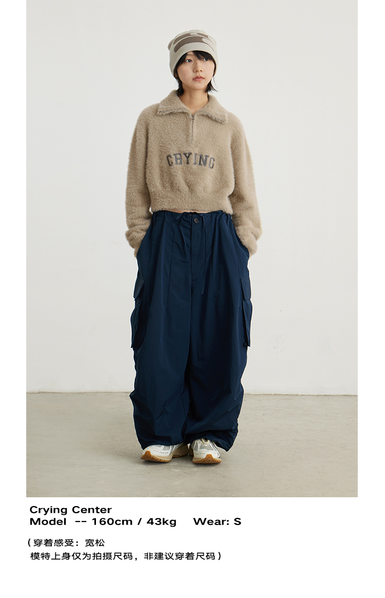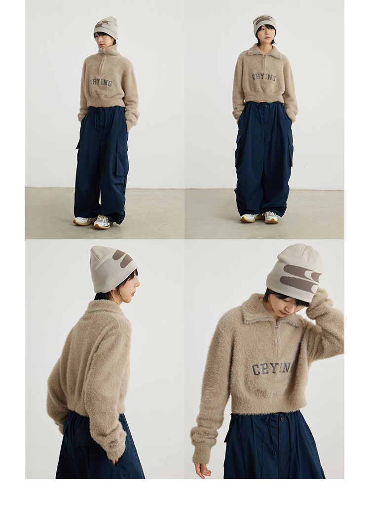 CryingCenter 卡其软糯仿浣熊毛绒高领拉链领毛衣 哭喊中心