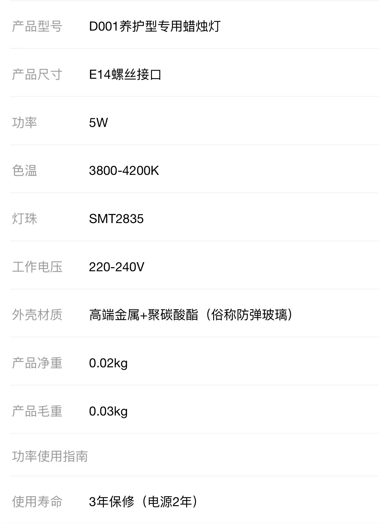 耀铭豪全光谱 养护型专用蜡烛灯 5W