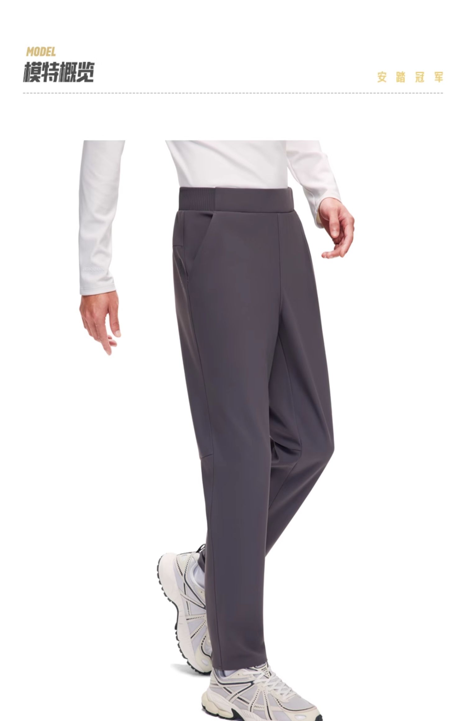 安踏冠军全天候系列丨行政休闲长裤男士加绒保暖直筒裤152440303