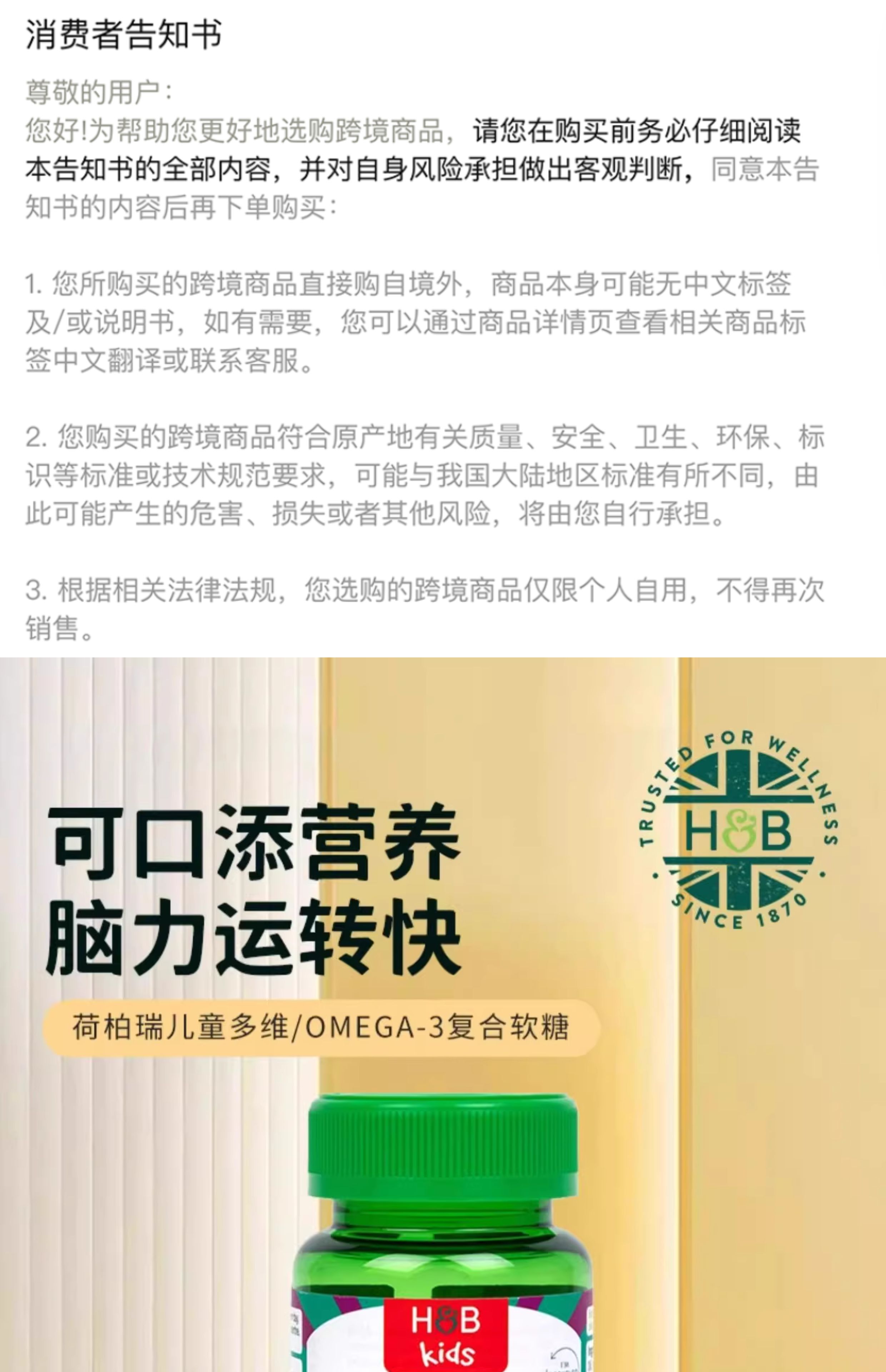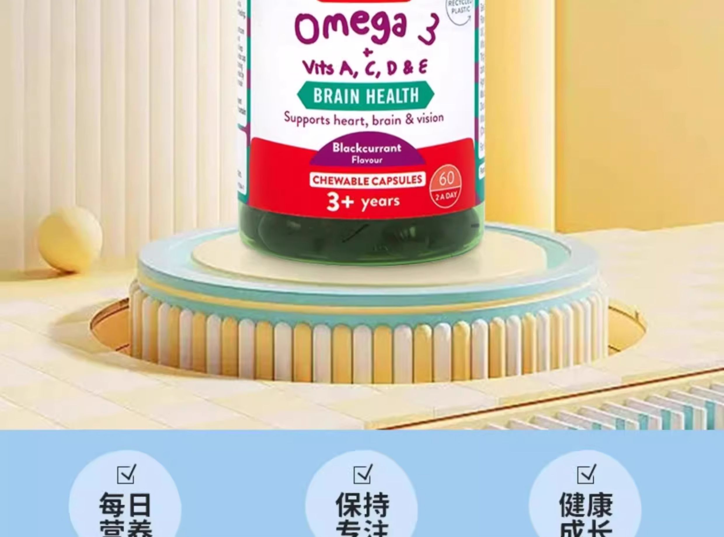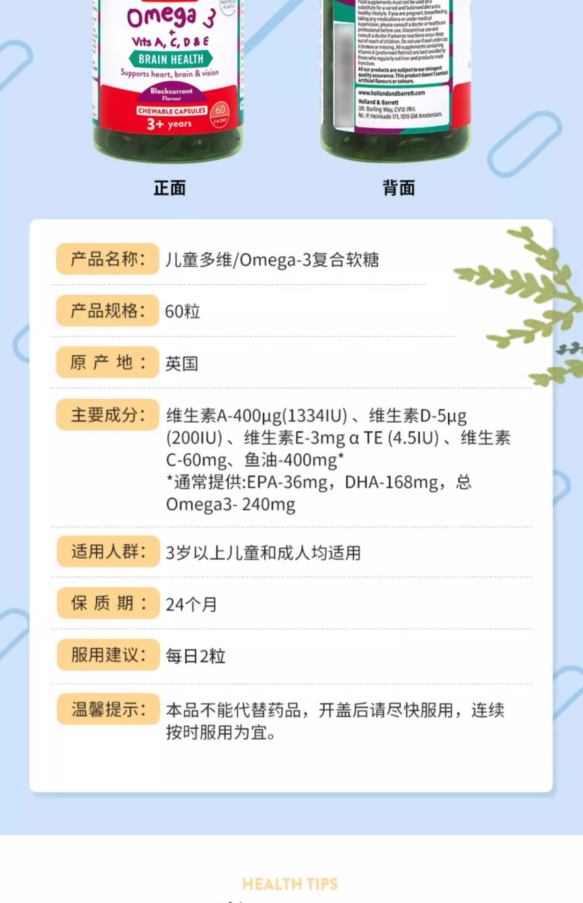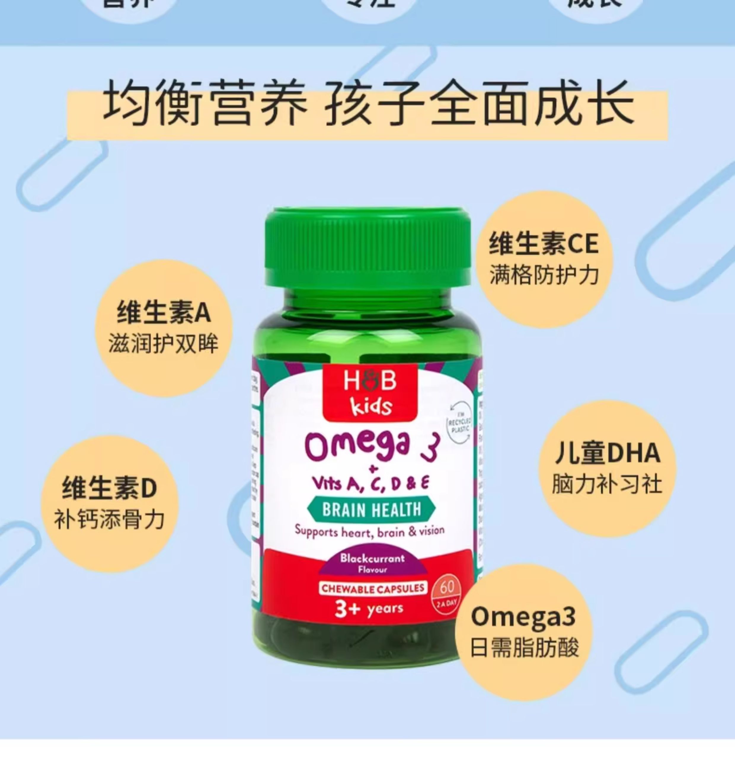 【保税仓】荷柏瑞儿童omega3软糖60粒(新) 60粒/瓶【效期26.4月】