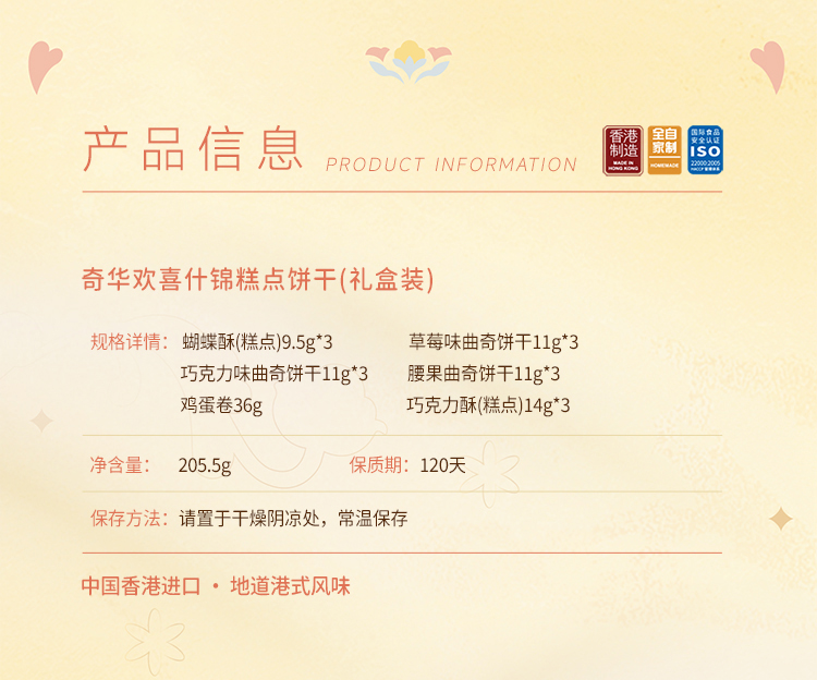 【奇华欢喜什锦礼盒】奇华饼家巧克力曲奇蝴蝶酥什锦糕点饼干礼盒中国香港进口零食节日送礼