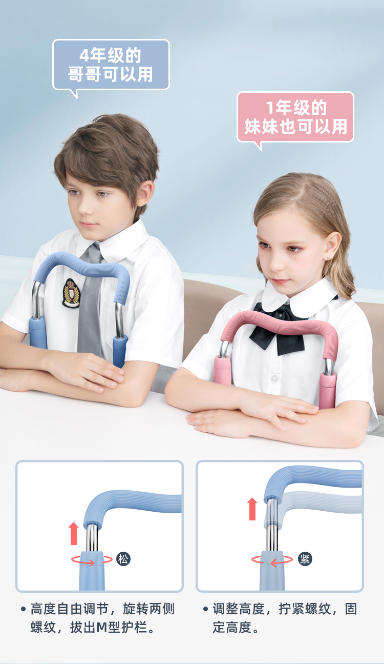 注意哦!小M弧新增15cm幼儿款,下单的宝宝们要注意凡是没有标注幼儿款的默认是小学生款哦小学生款护栏宽是25cm,新增幼儿款护栏宽是15cm,更加贴合4-7岁宝宝的胸口,不妨碍小宝贝们正常活动~
