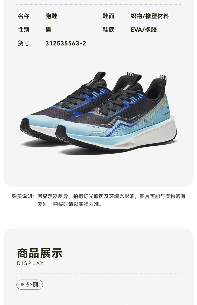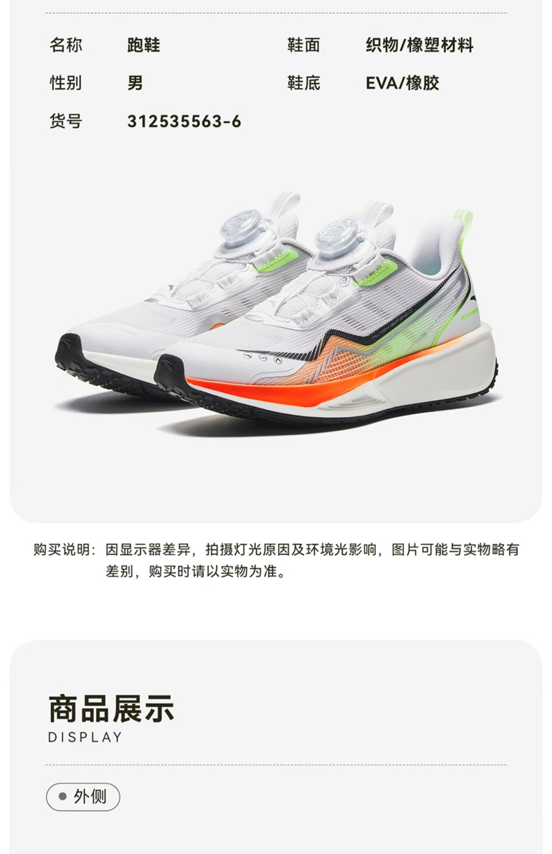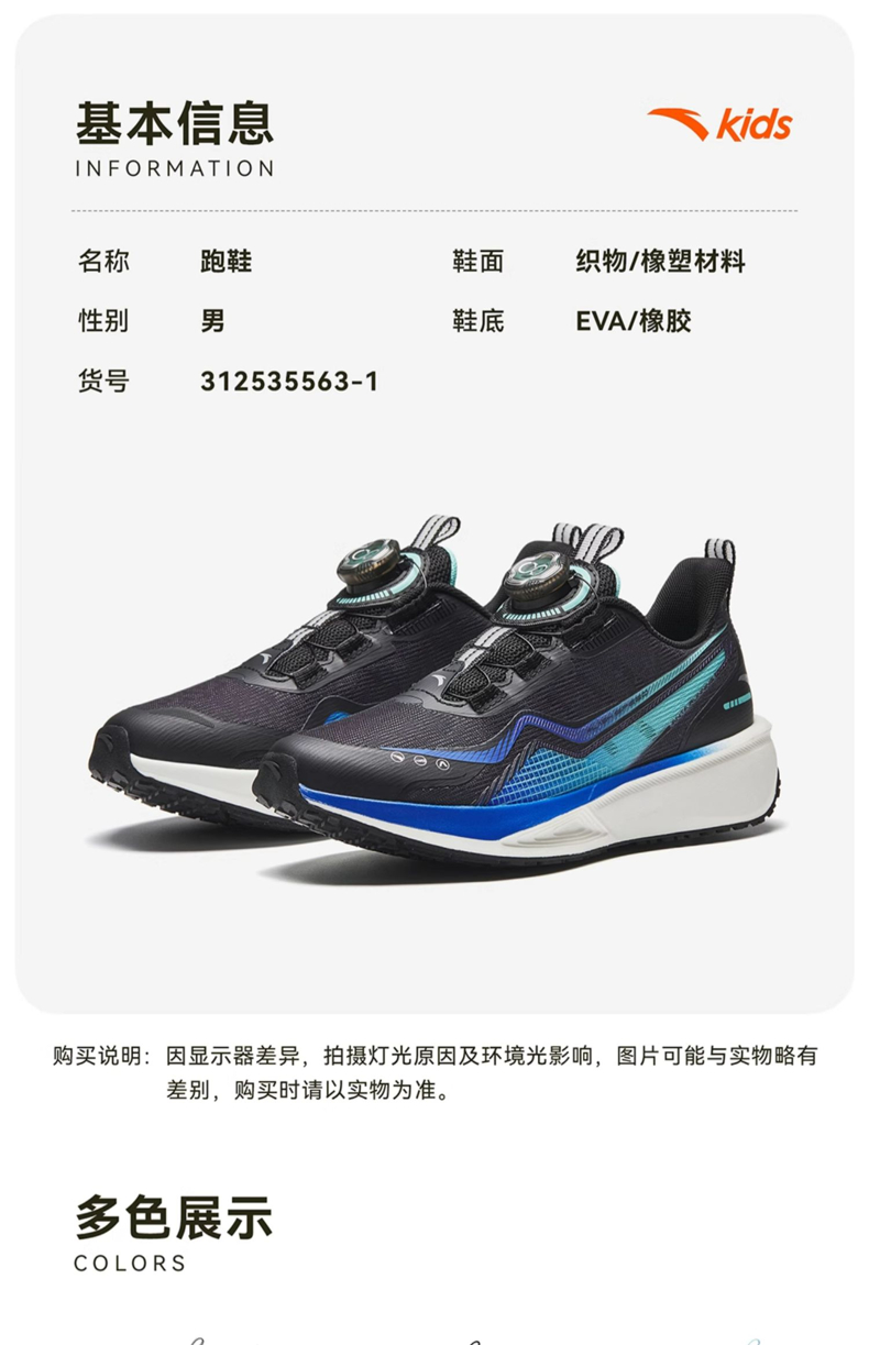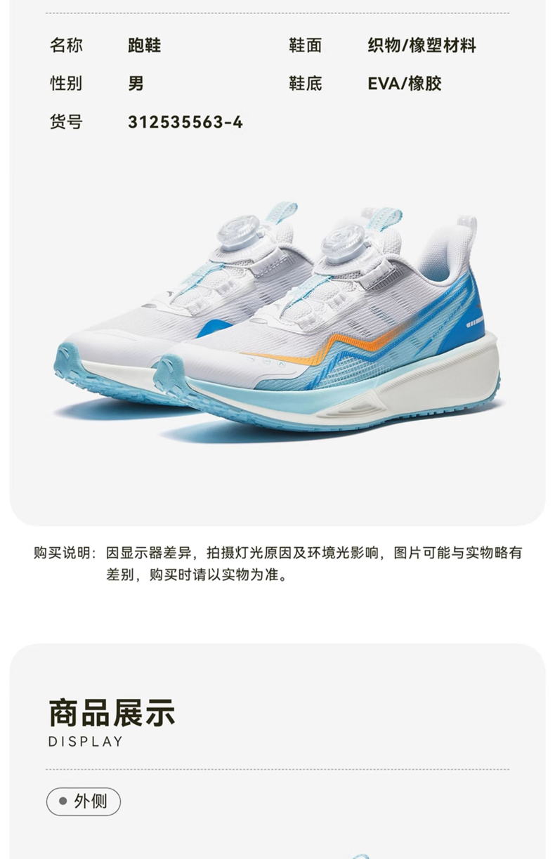 安踏儿童运动鞋男大童跑鞋2025秋季氢跳跑步鞋312535563