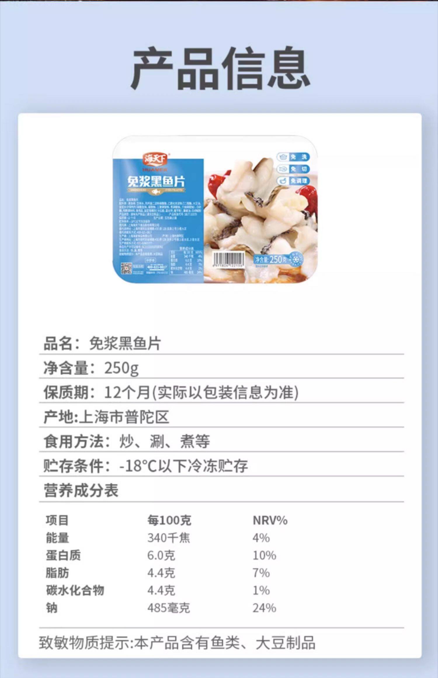 250g海天下免浆黑鱼片