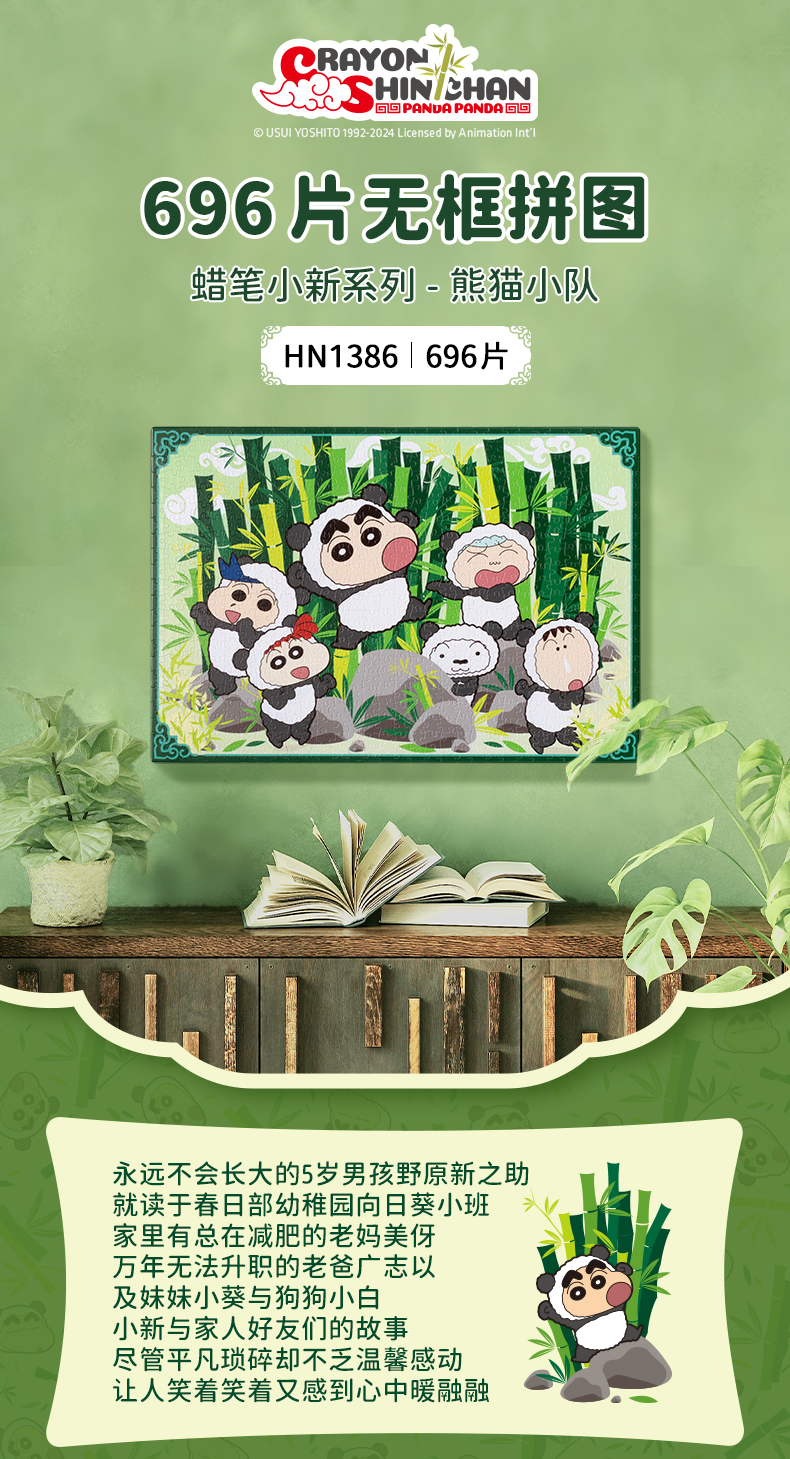 696片 无框塑料拼图 HN1386 蜡笔小新系列-熊猫小队