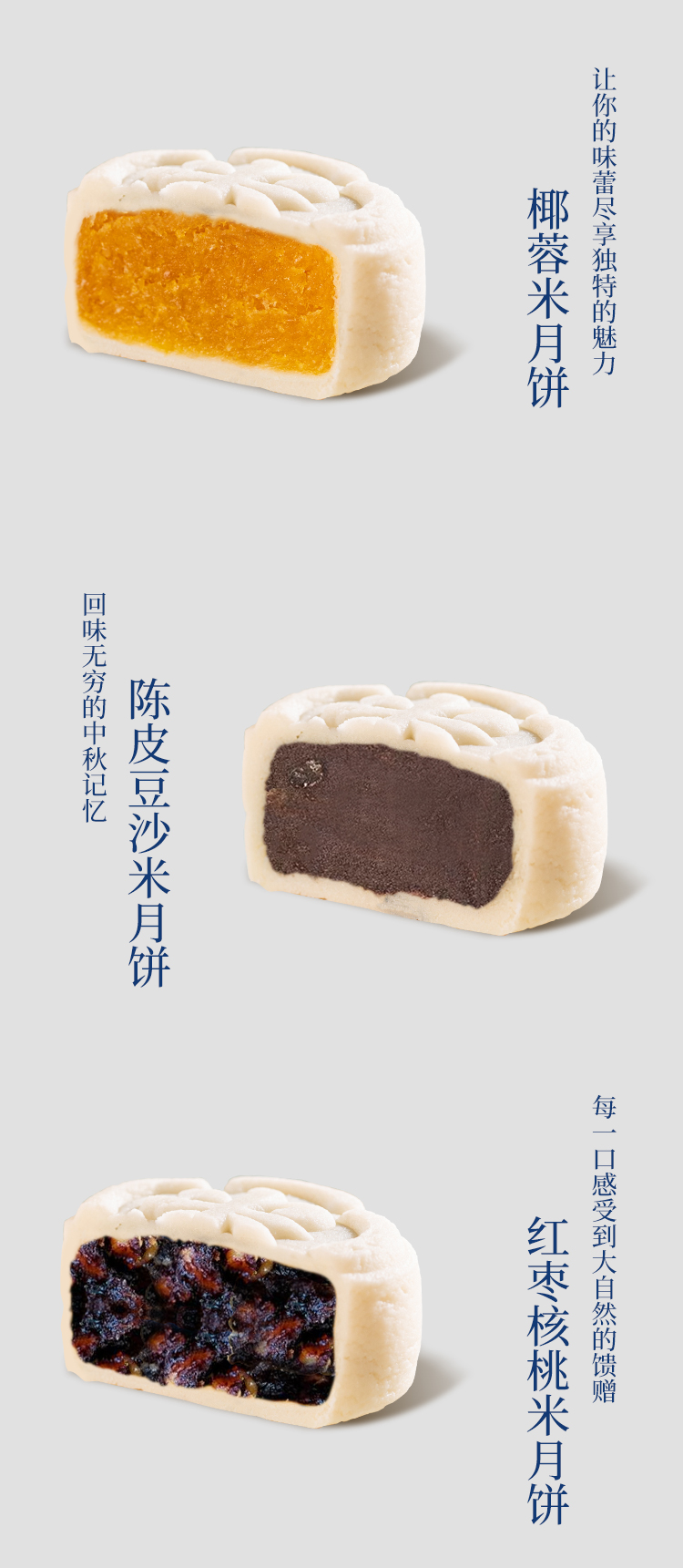 南宋米月-55克黑芝麻米月饼X2个,55克椰蓉米月饼X2个,55克陈皮豆沙米月饼X2个,55克红枣核桃米月饼X2个