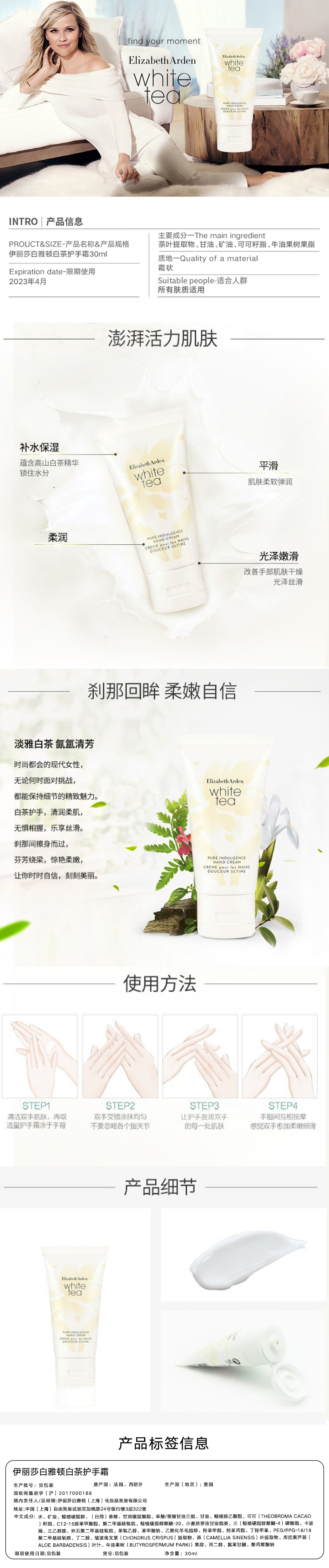 伊丽莎白雅顿 白茶 护手霜 30ml