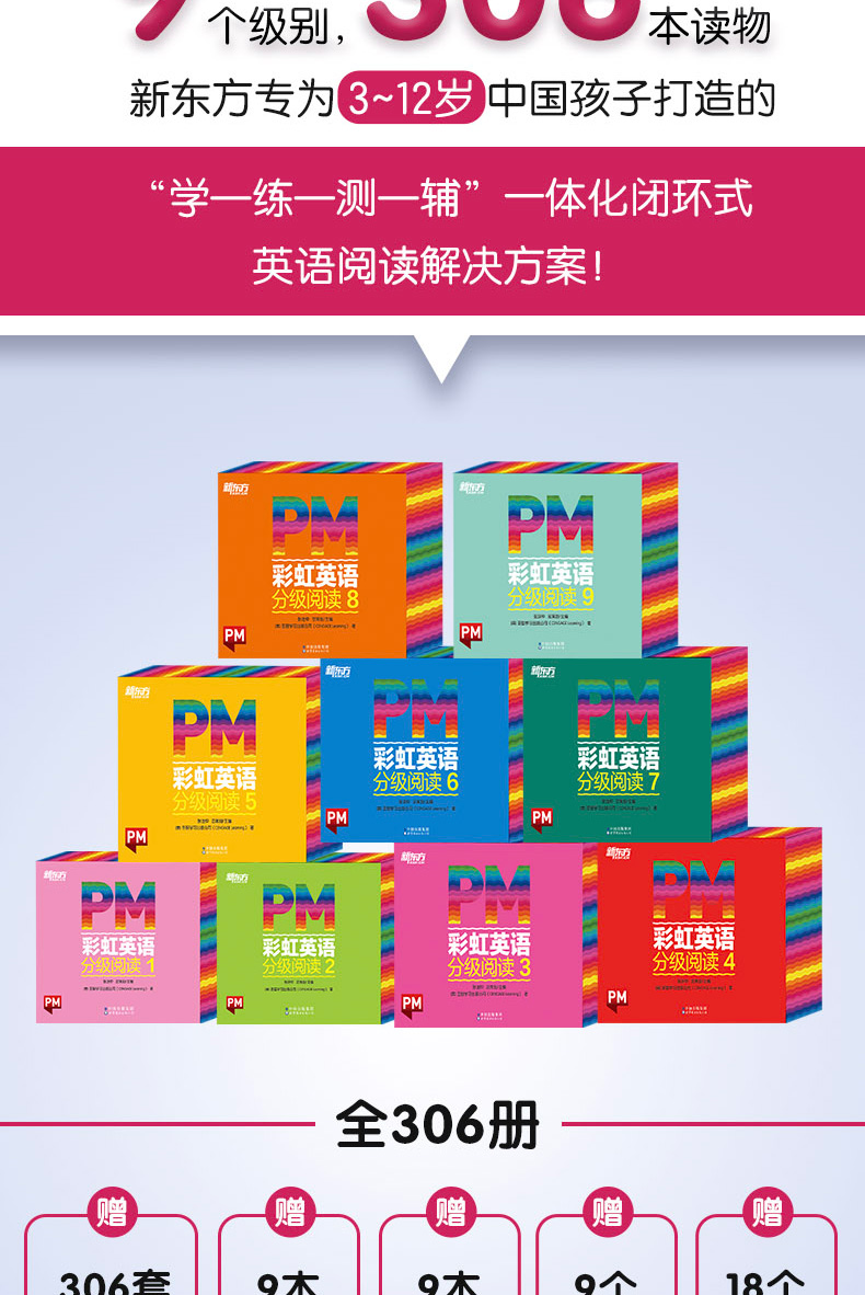 PM彩虹英语分级阅读1-9 支持单级别购买!引自圣智学习出版公司,被近20个国家广泛使用!包含9个级别,306本分级读物,专为3~12岁中国孩子打造的线上、线下相结合的一体化英语阅读解决方案