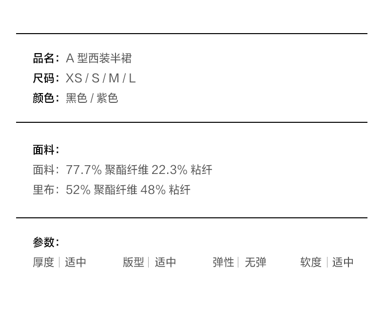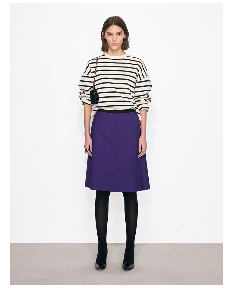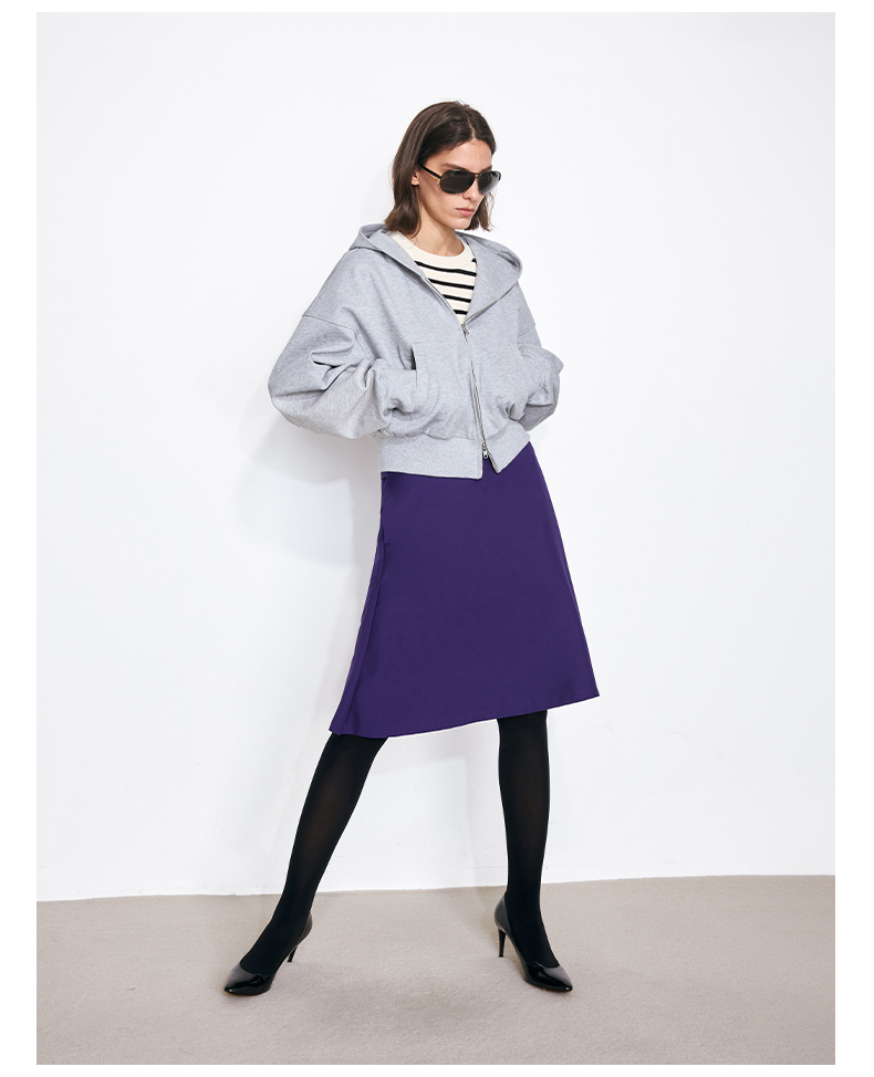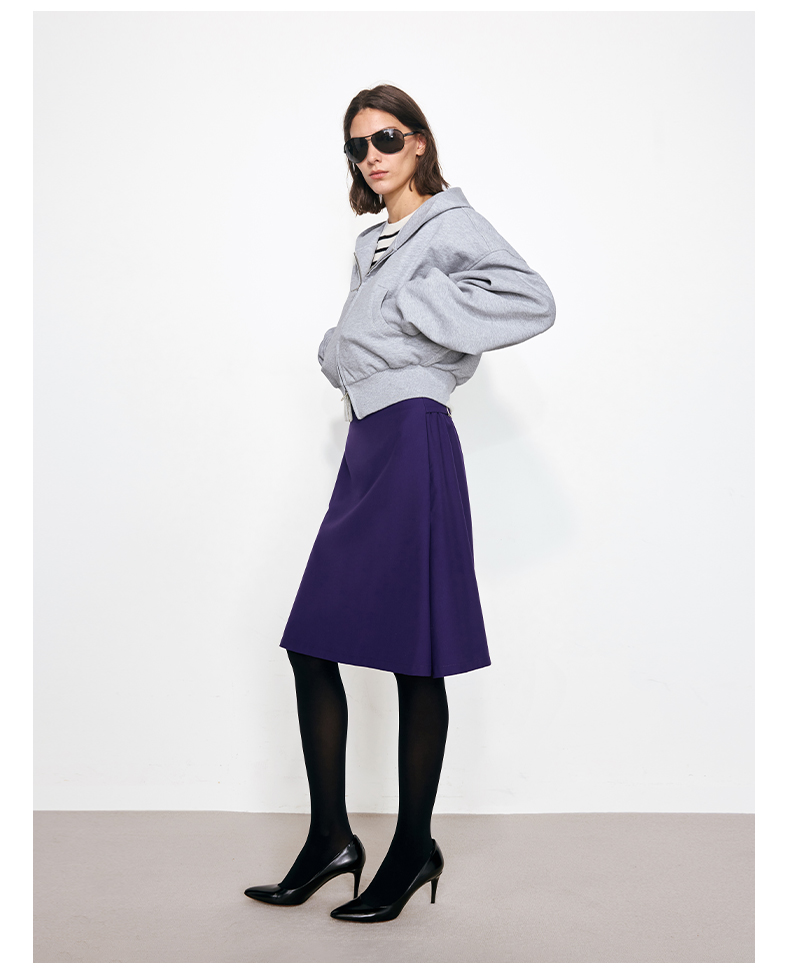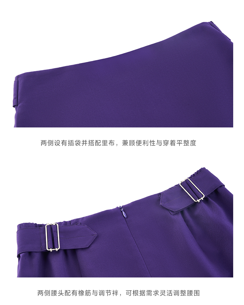 NUTH不对称搭片A字型西装半裙女 紫色/黑色
