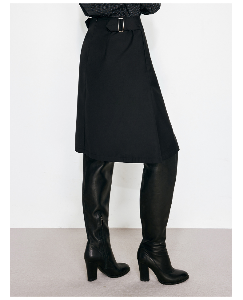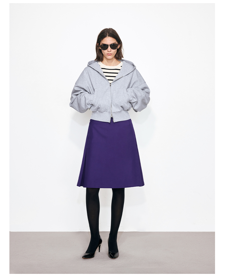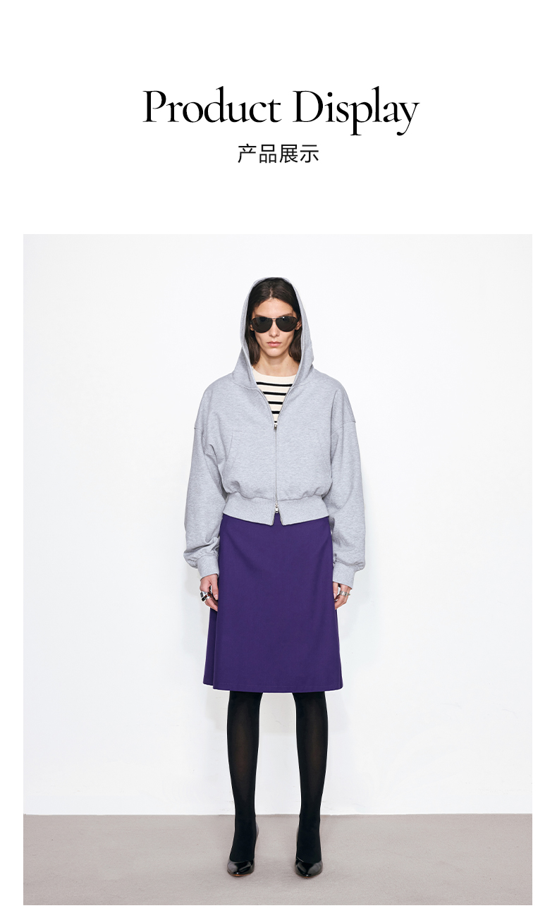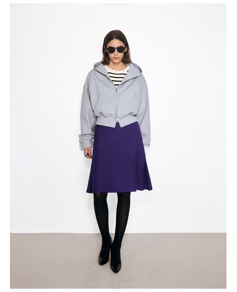 NUTH不对称搭片A字型西装半裙女 紫色/黑色