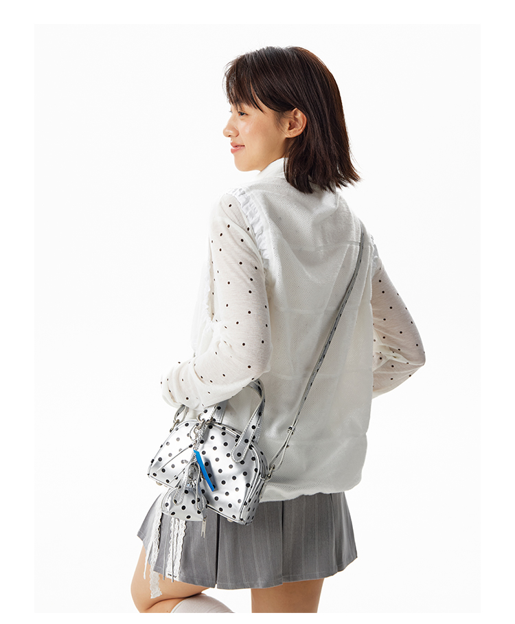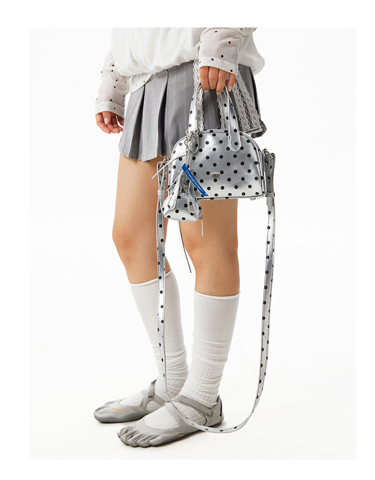 CryingCenter月光银波点质感亮面迷你logo波士顿包斜挎包包