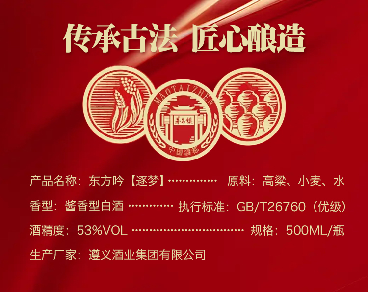 一价到底底价双十一 【东方吟】遵酒东方吟·逐梦 53%vol酒精度 酱香型 500ml/瓶,整箱到手6瓶