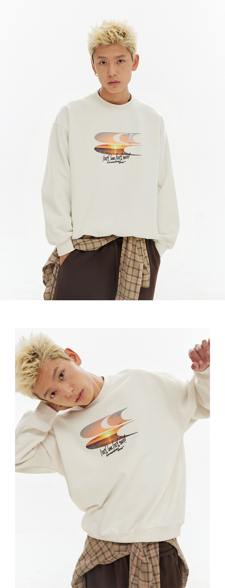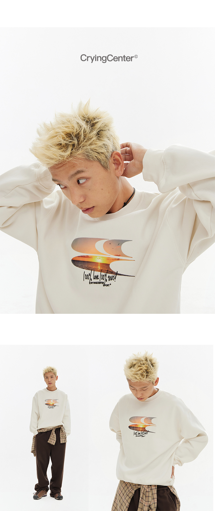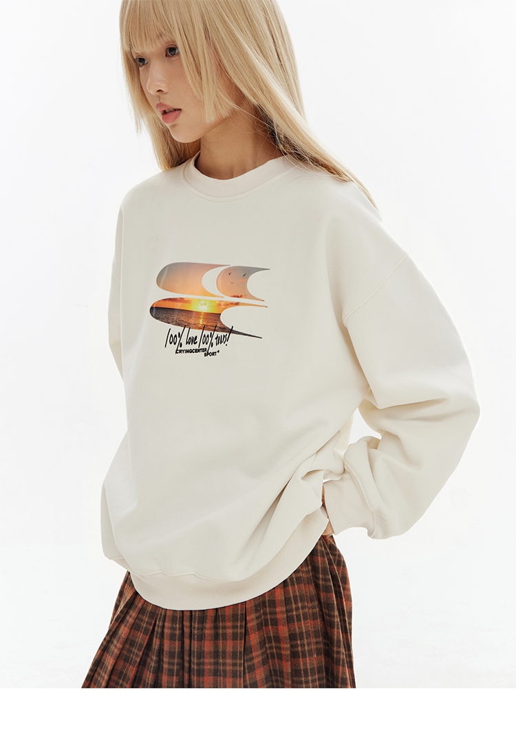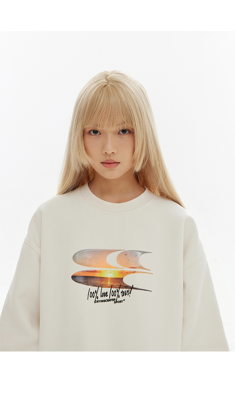 CryingCenter 黄昏海景果冻质感logo圆领加绒卫衣 哭喊中心
