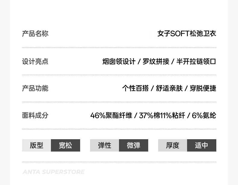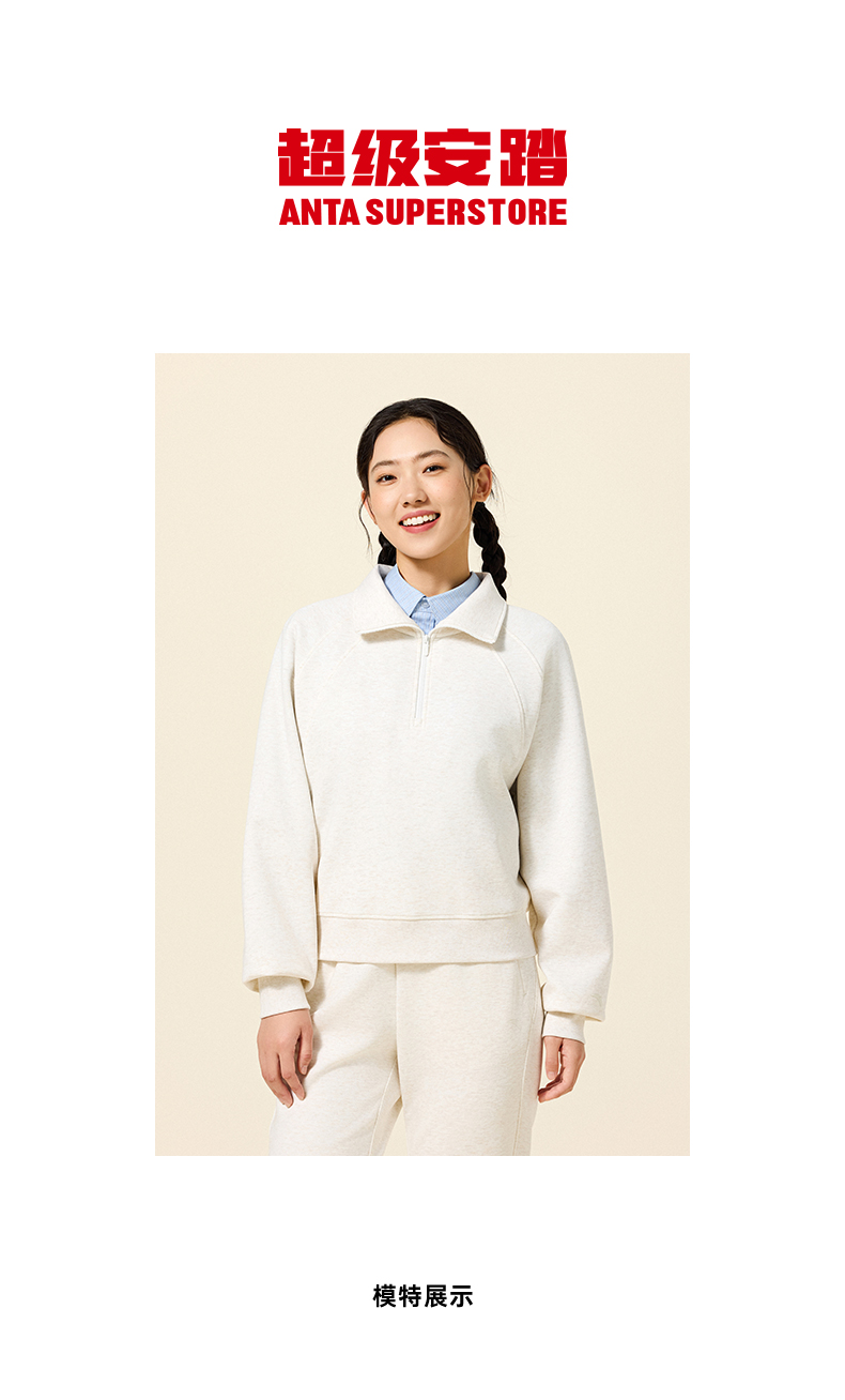 超级安踏立领卫衣女士秋季宽松半开拉链休闲百搭套头衫上衣女162535701U