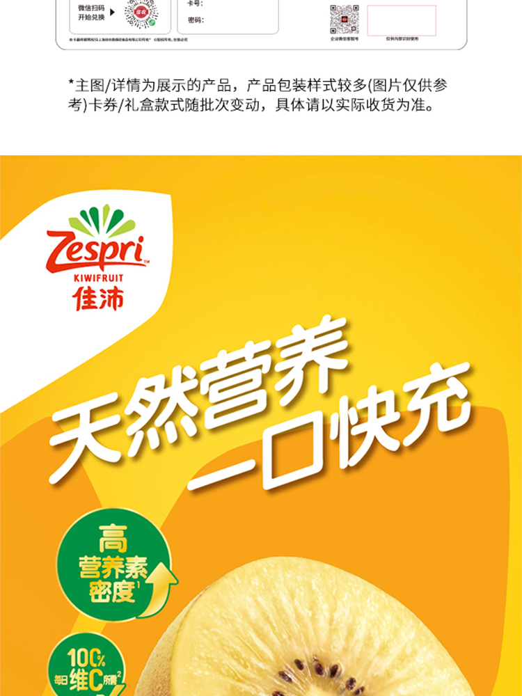 【礼券】进口佳沛阳光金果12粒礼盒