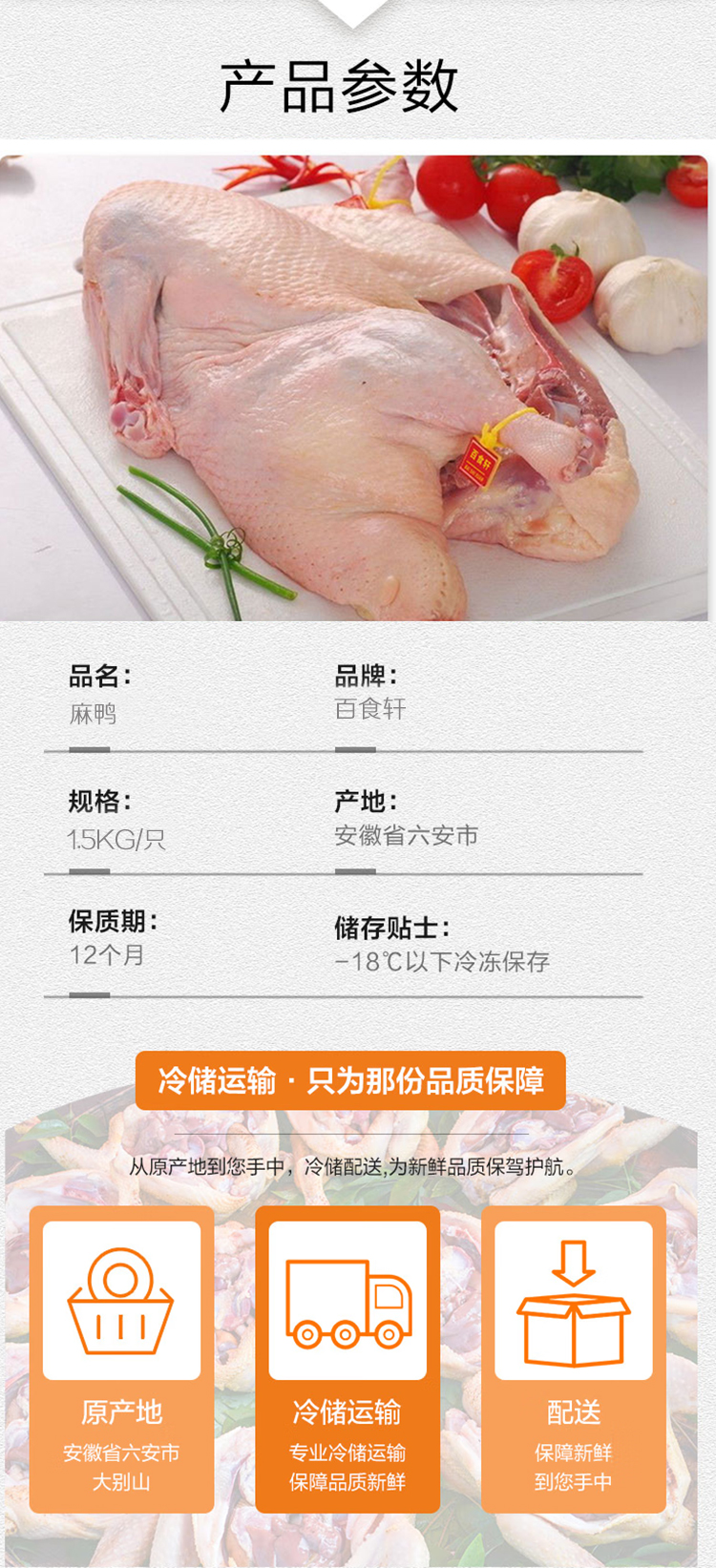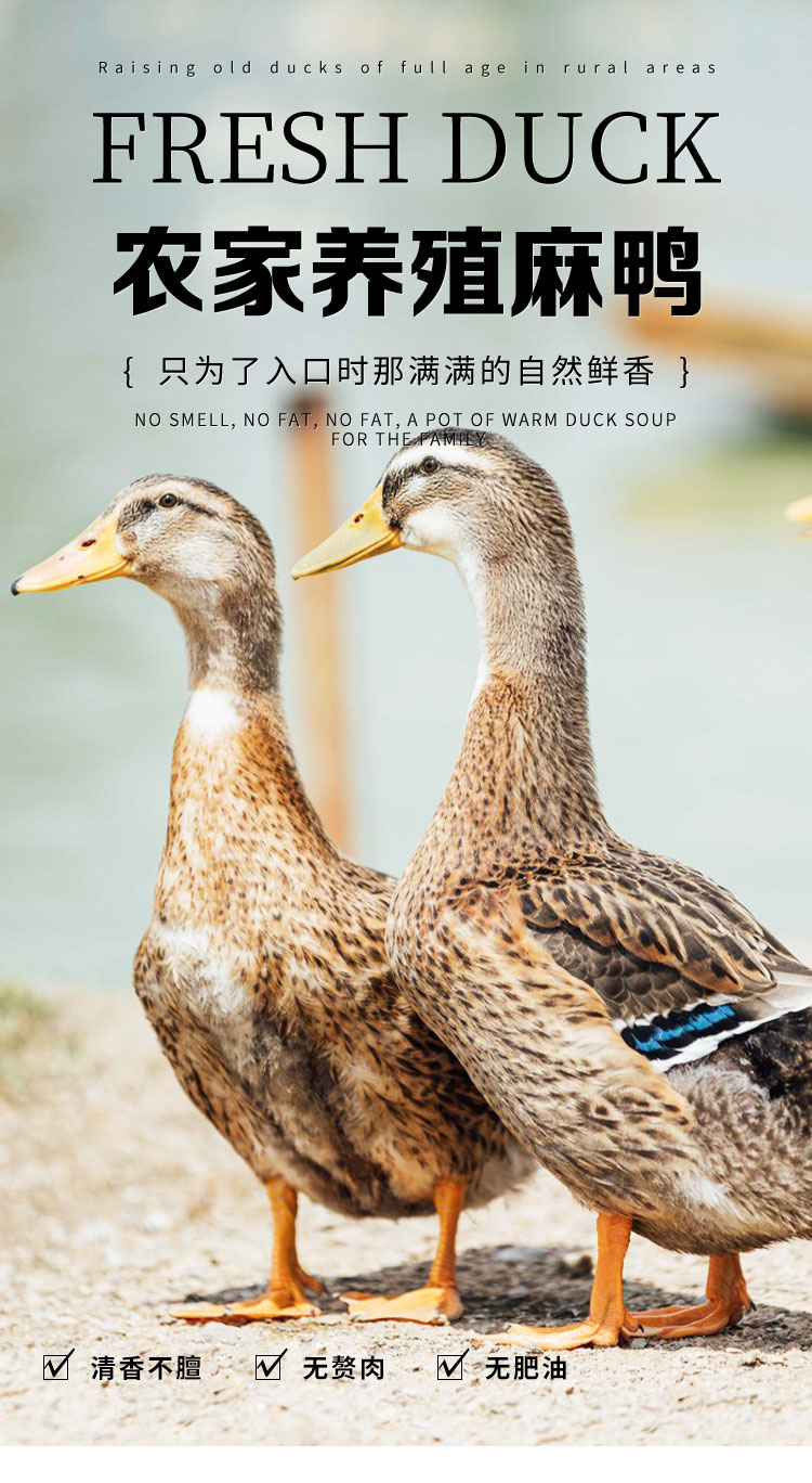 百食轩 安徽大别山农家池塘生态老麻鸭单只 彩箱装