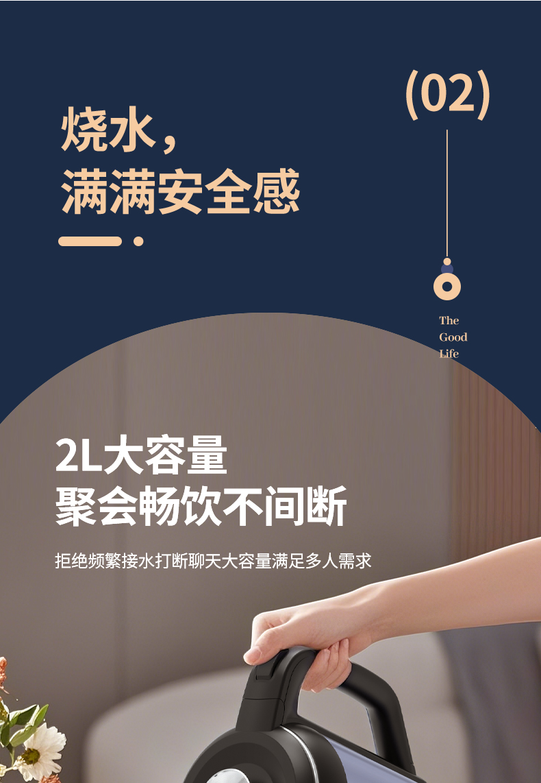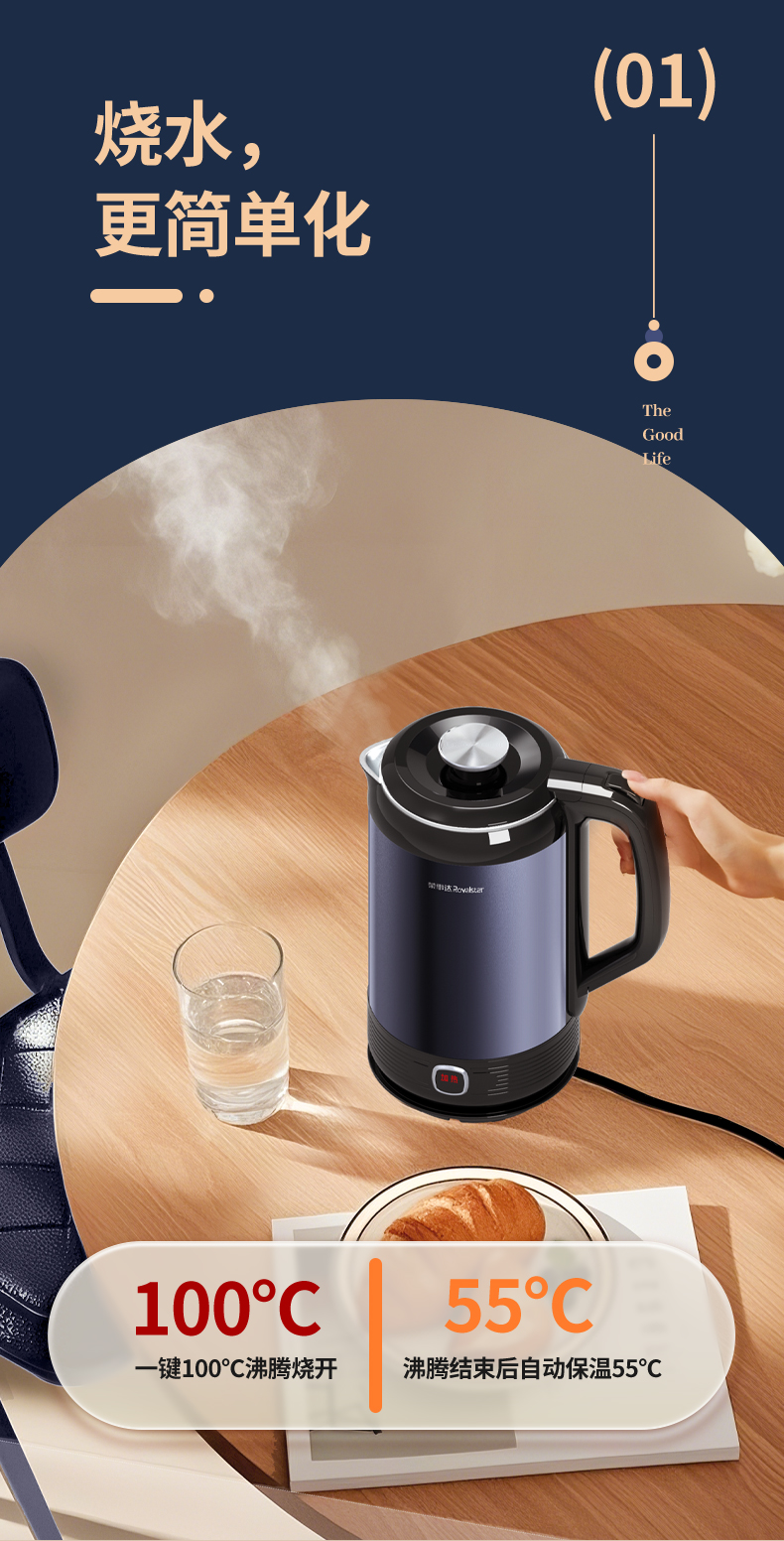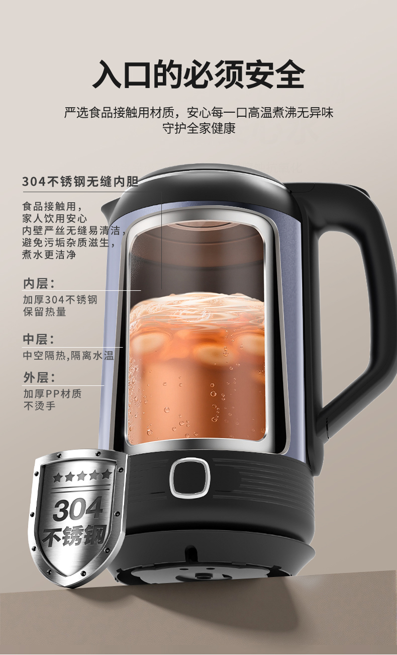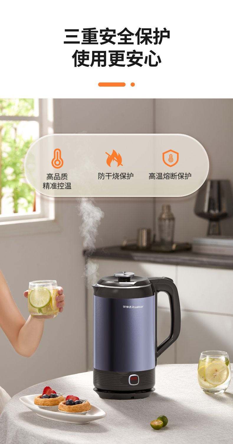 甄选 | 【快速烧水 双层防烫】荣事达电热水壶2升烧水壶暖水壶开水壶家用304不锈钢大功率RS-KT200D