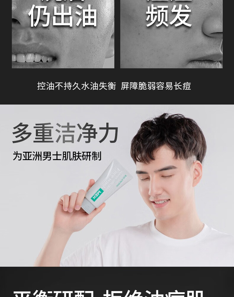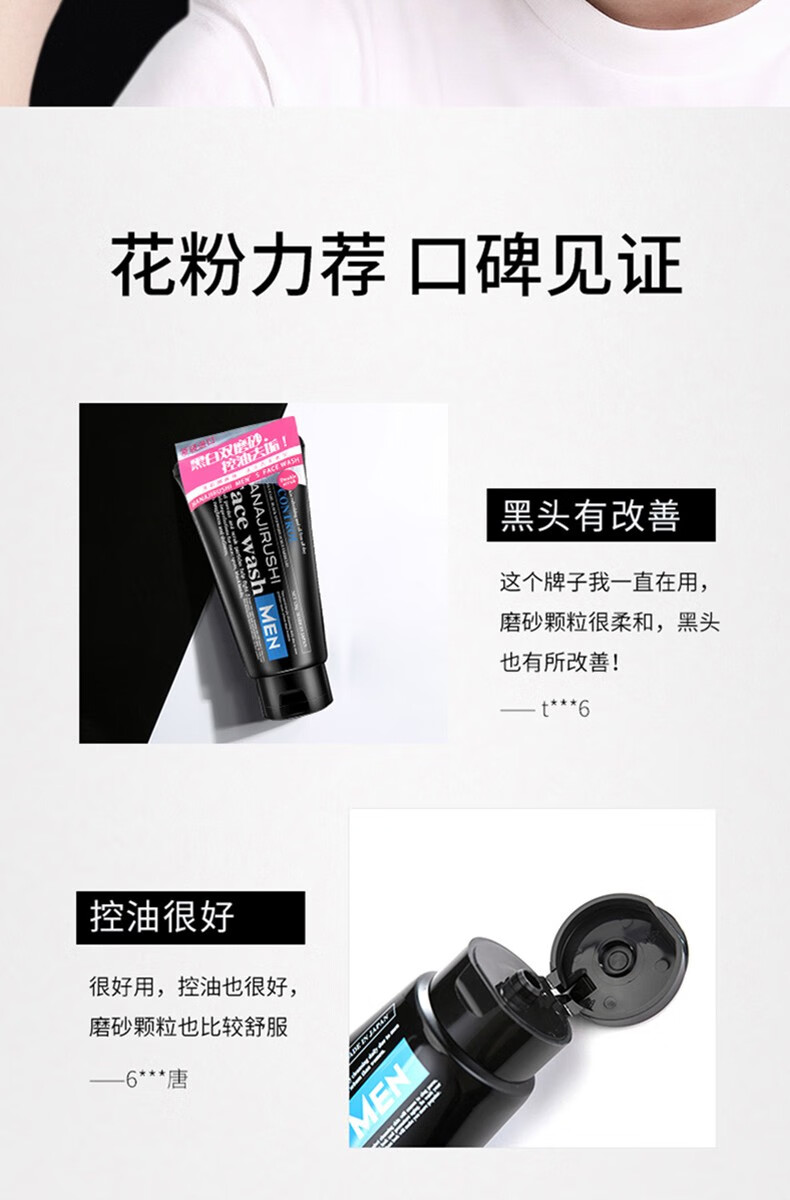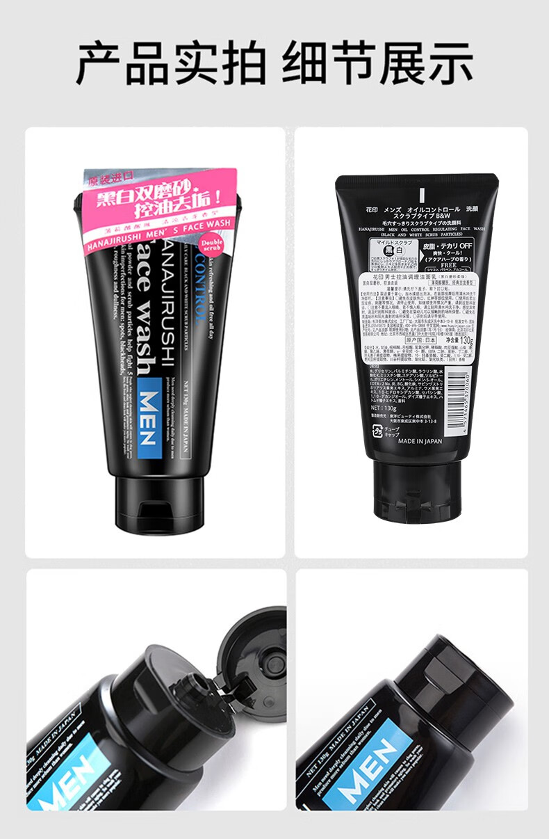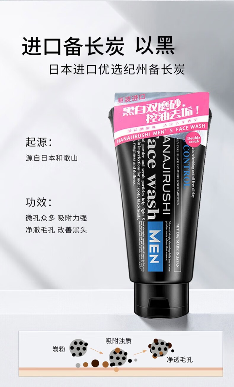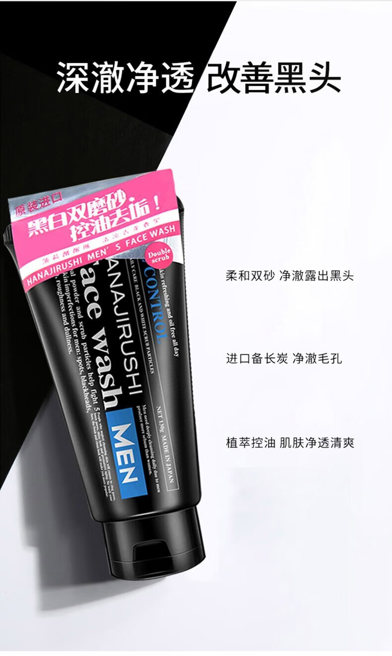 HANAJIRUSHI花印 男士控油调理洗面乳(黑白磨砂柔珠)130g