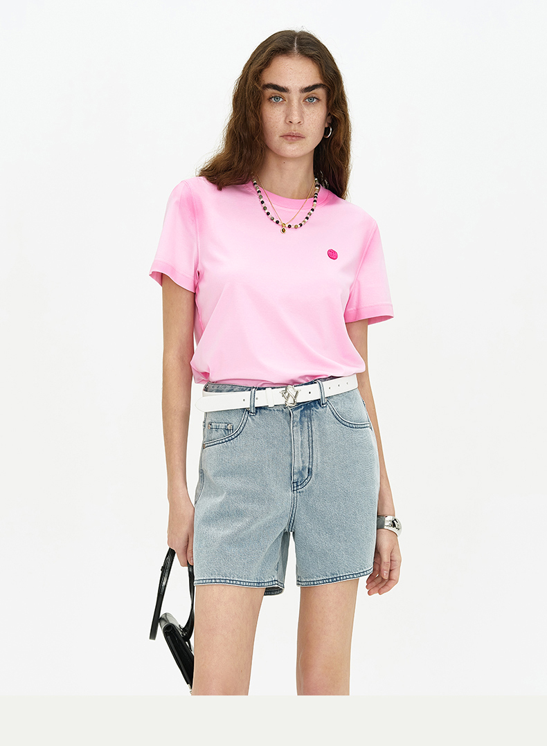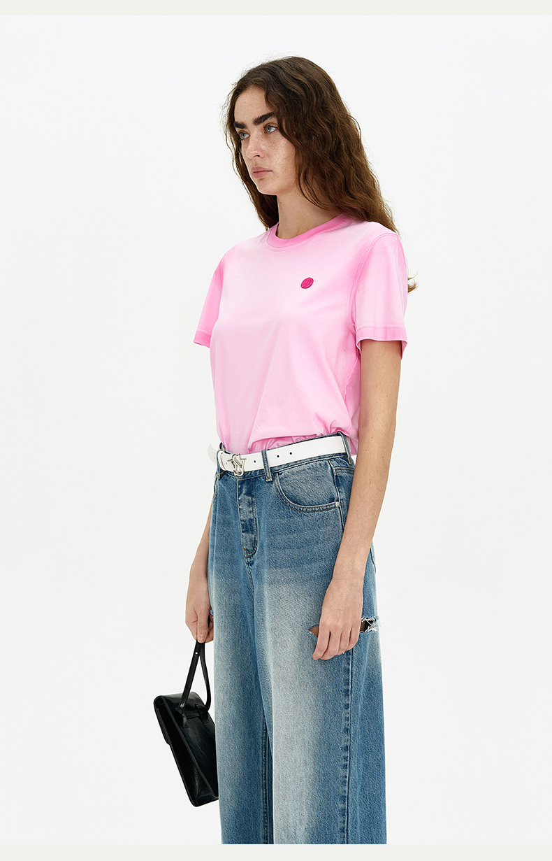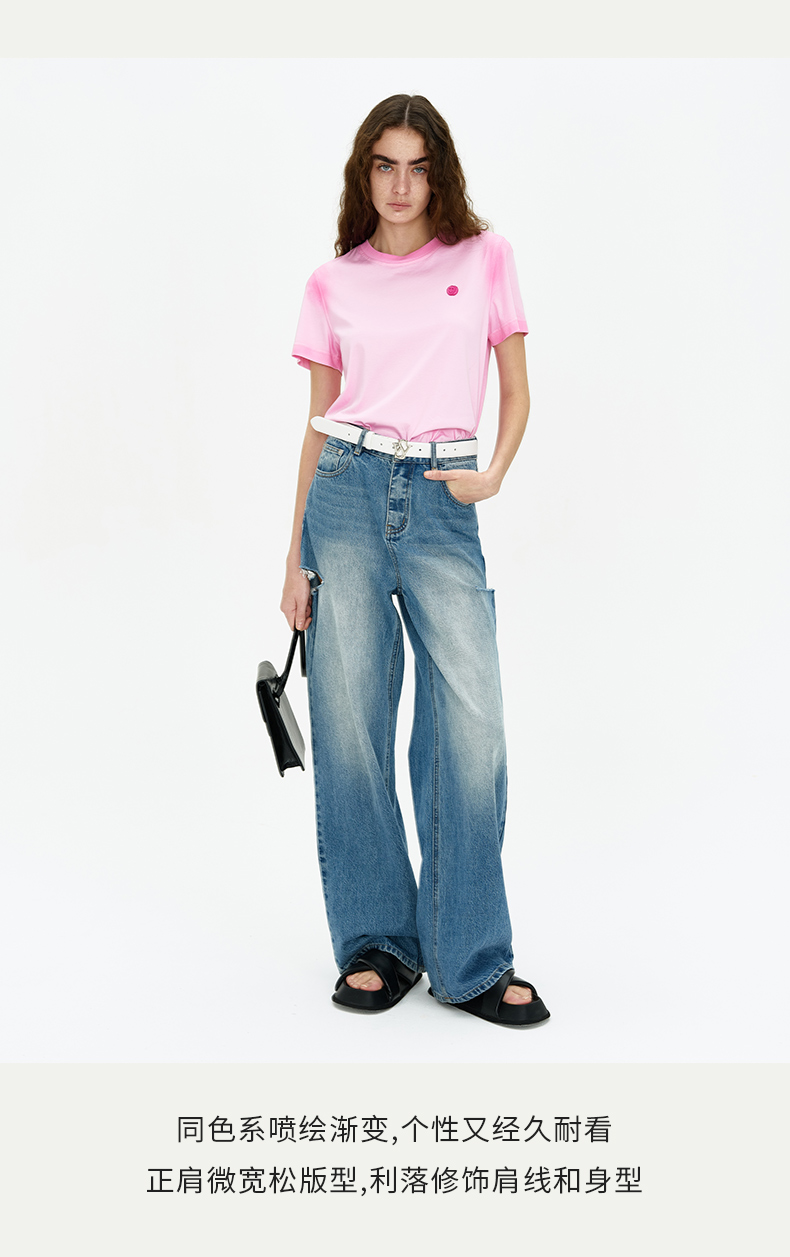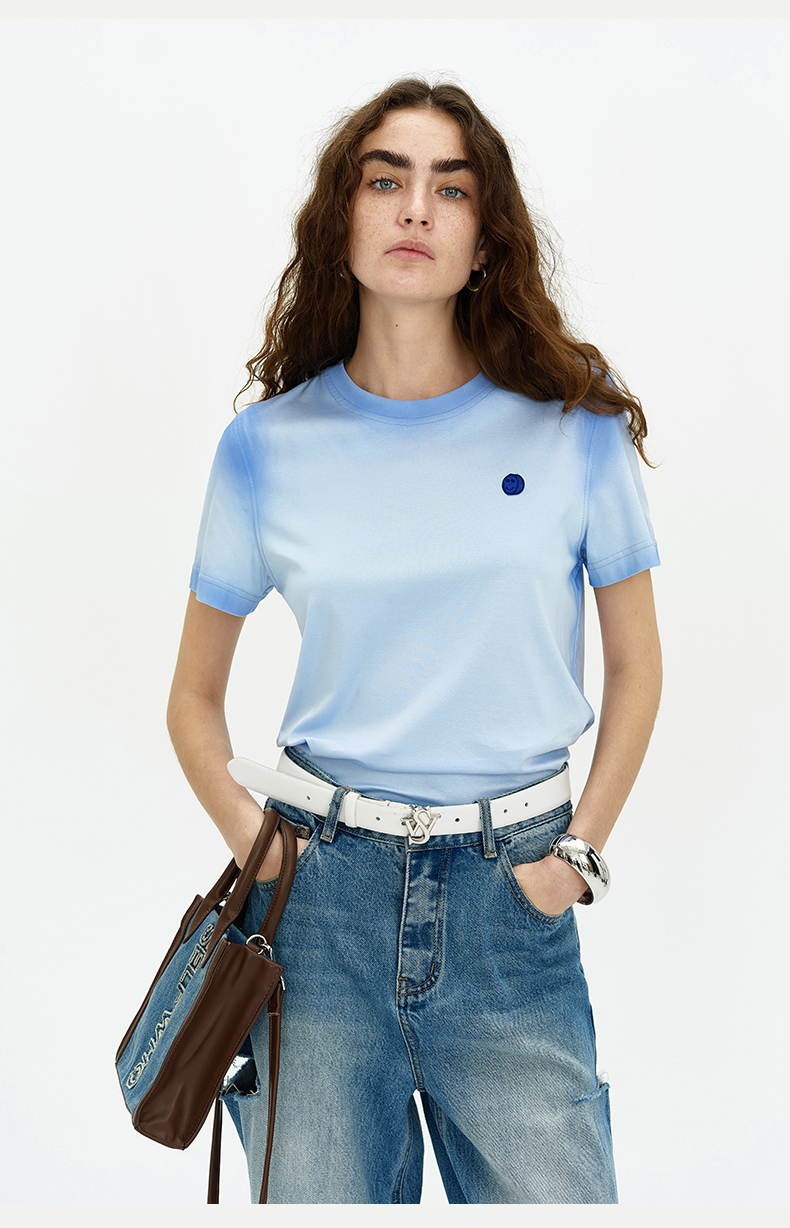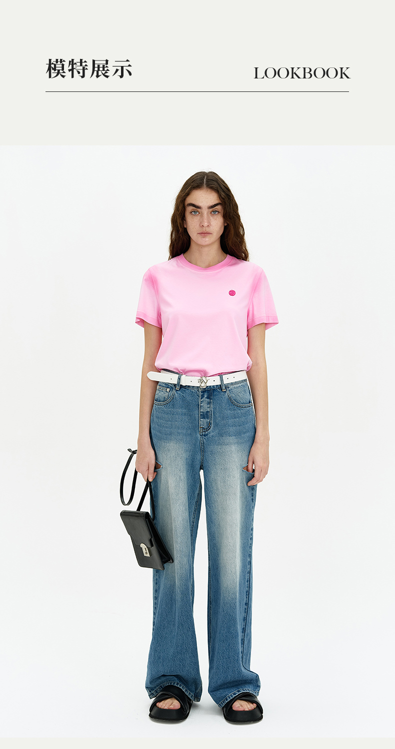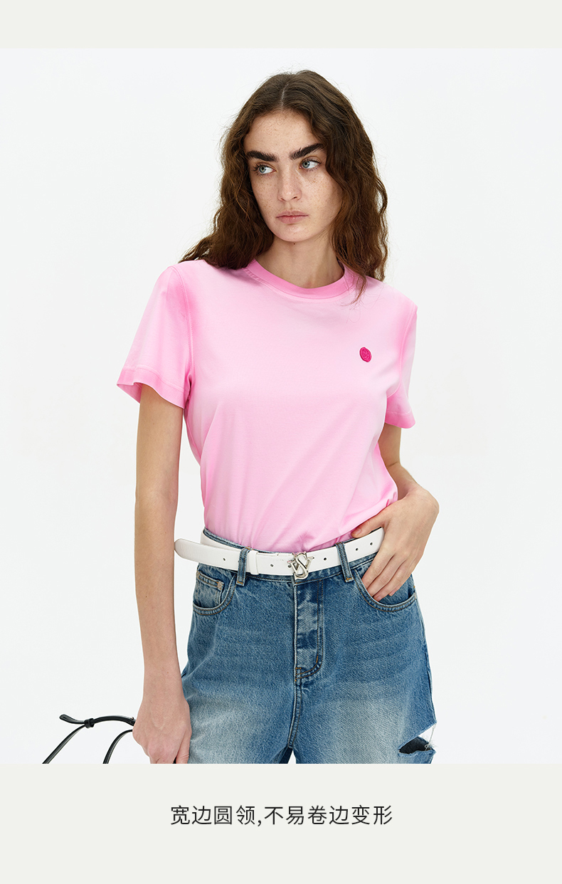 SELFWHO 莫代尔桑蚕丝T恤女2024新款夏季小个子宽松圆领短袖上衣