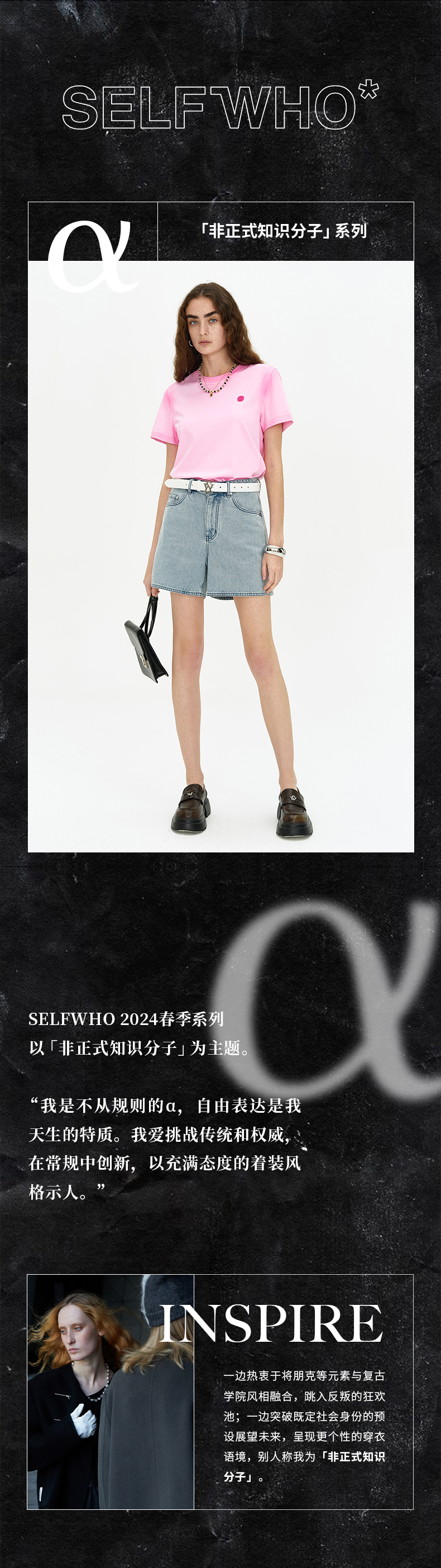 - SELFWHO——将街头文化融入高级成衣,以服装为载体,用廓形、解构设计和艺术意象探寻极致的生活方式。特立独行,知行合一,TO BE YOURSELF。