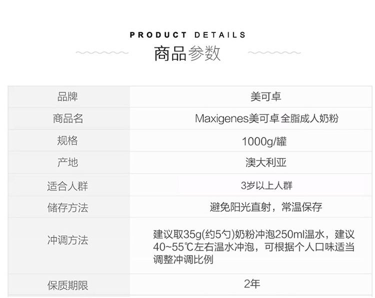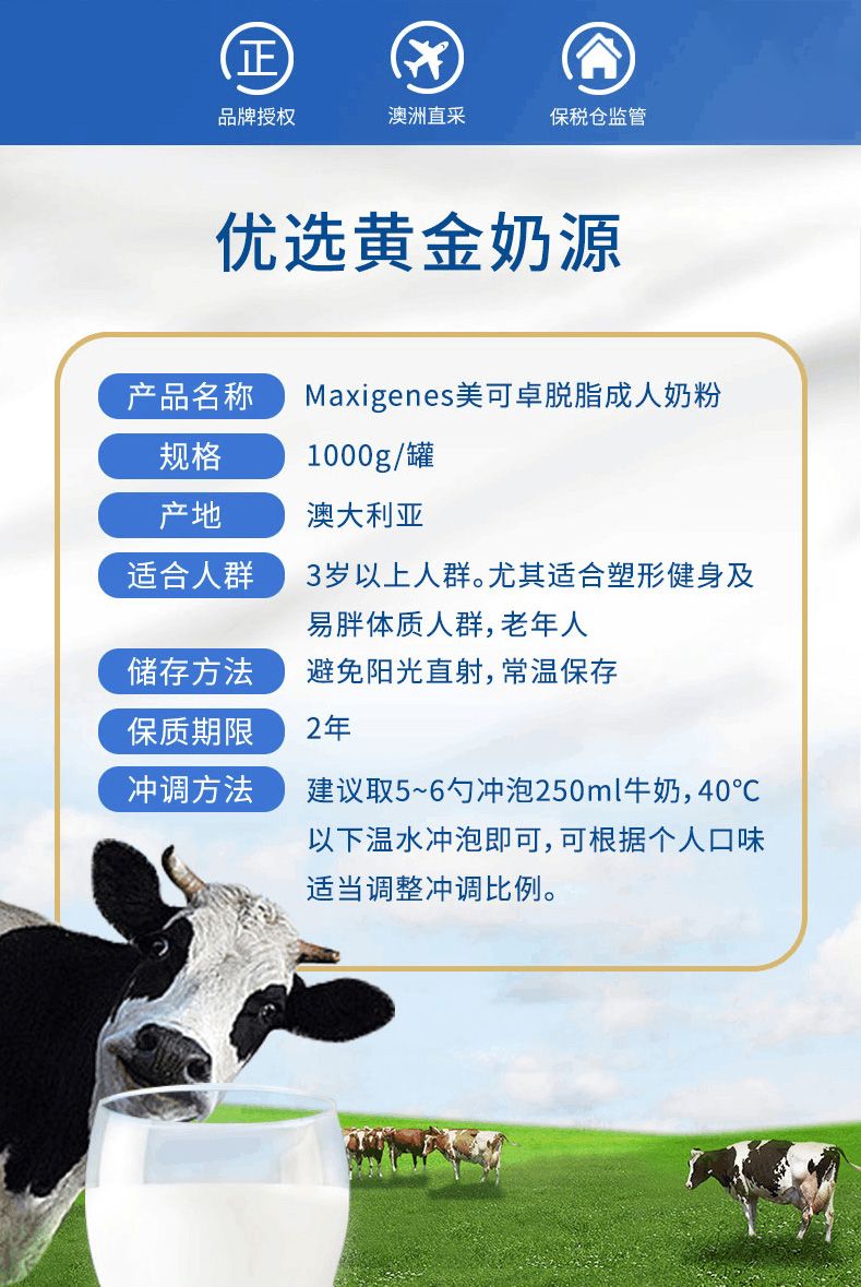 Maxigenes 美可卓 成人奶粉全脂/脱脂 1kg
