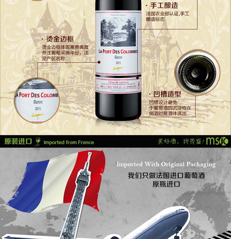 【福利秒杀】哥仑布 哥仑布古堡 干红葡萄酒 男爵 酒庄酒 750ml 单支