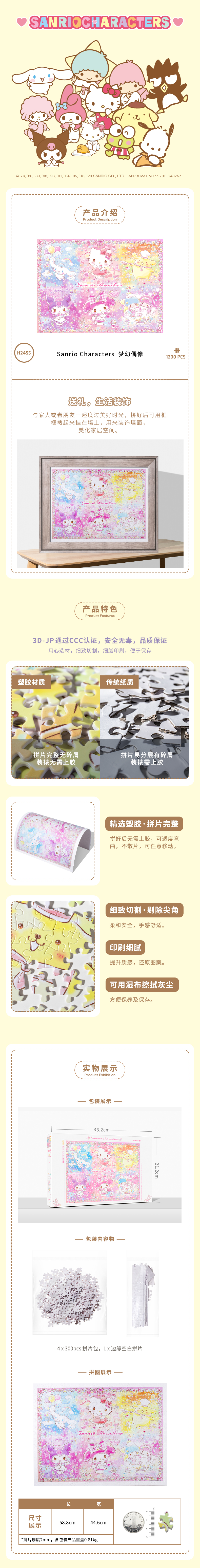 1200片 平面拼图 塑料拼图 H2455 Sanrio Characters - 梦幻偶像