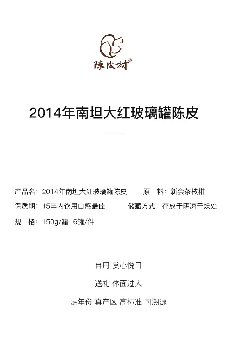 | 产品名称 | 陈皮村2014年南坦大红玻璃罐陈皮 |