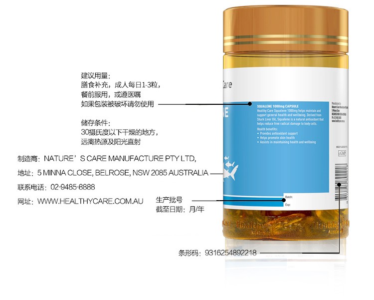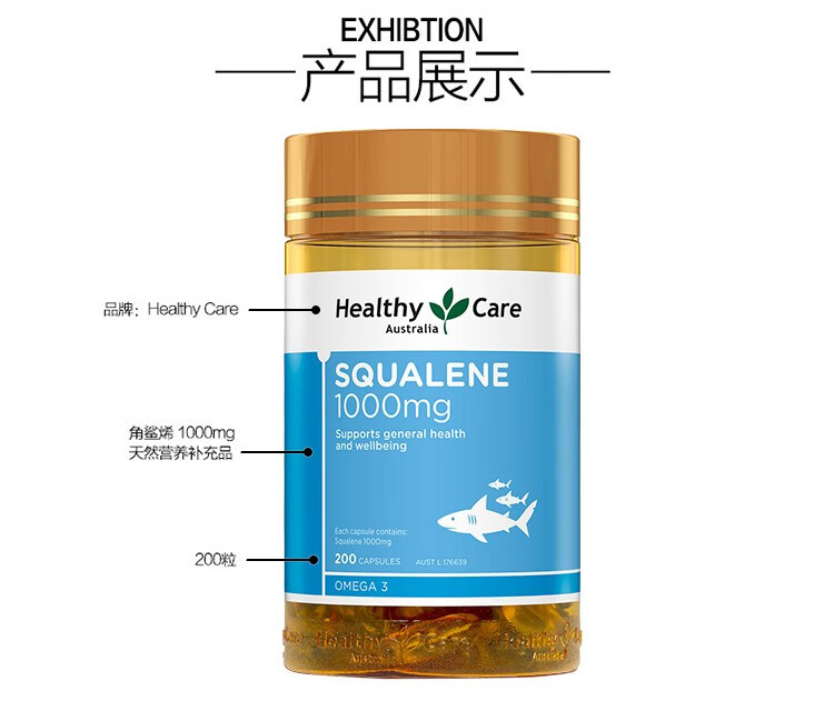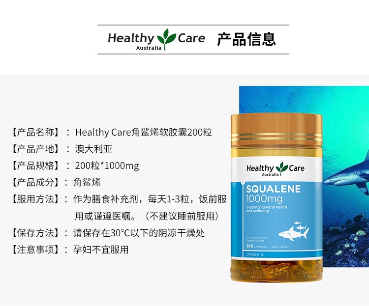 【保税仓】Healthy Care角鲨烯胶囊200粒 澳洲进口提高免疫