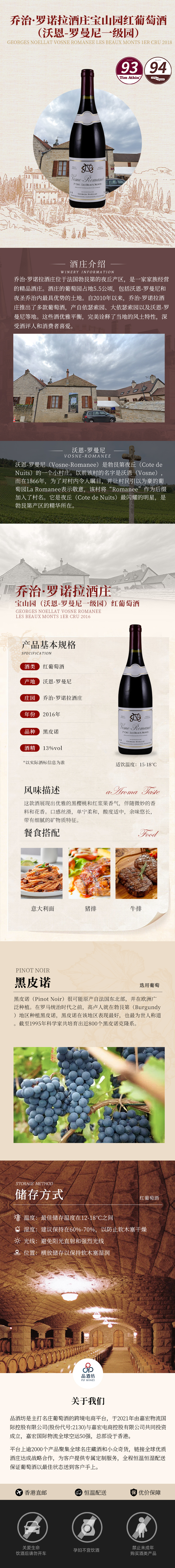 2018 Georges Noellat Vosne Romanee Les Beaux Monts 1er Cru 乔治·罗诺拉酒庄宝山园(沃恩-罗曼尼一级园)干红葡萄酒