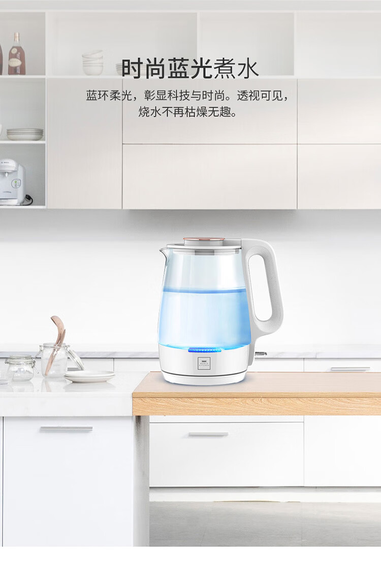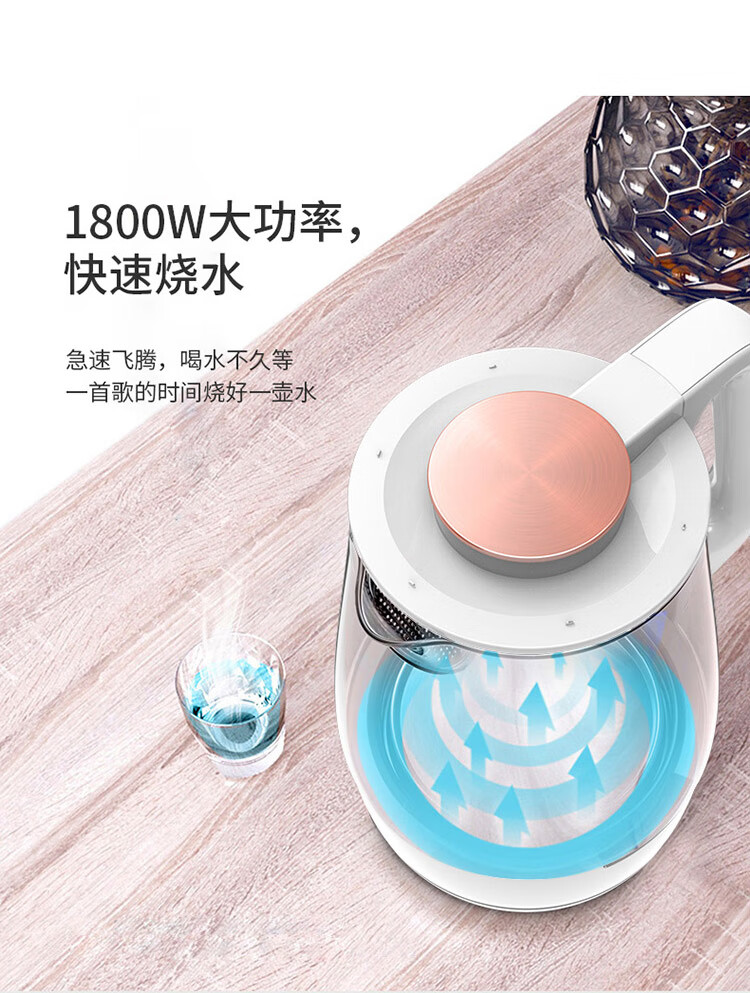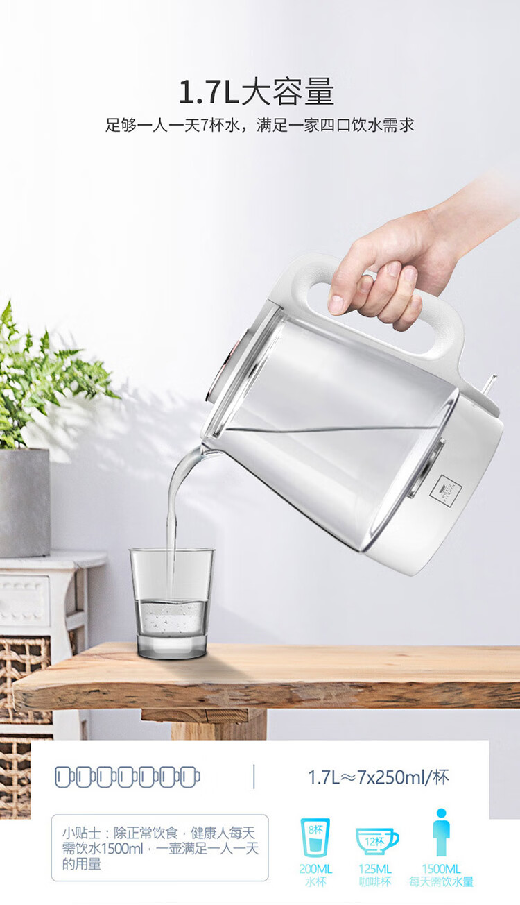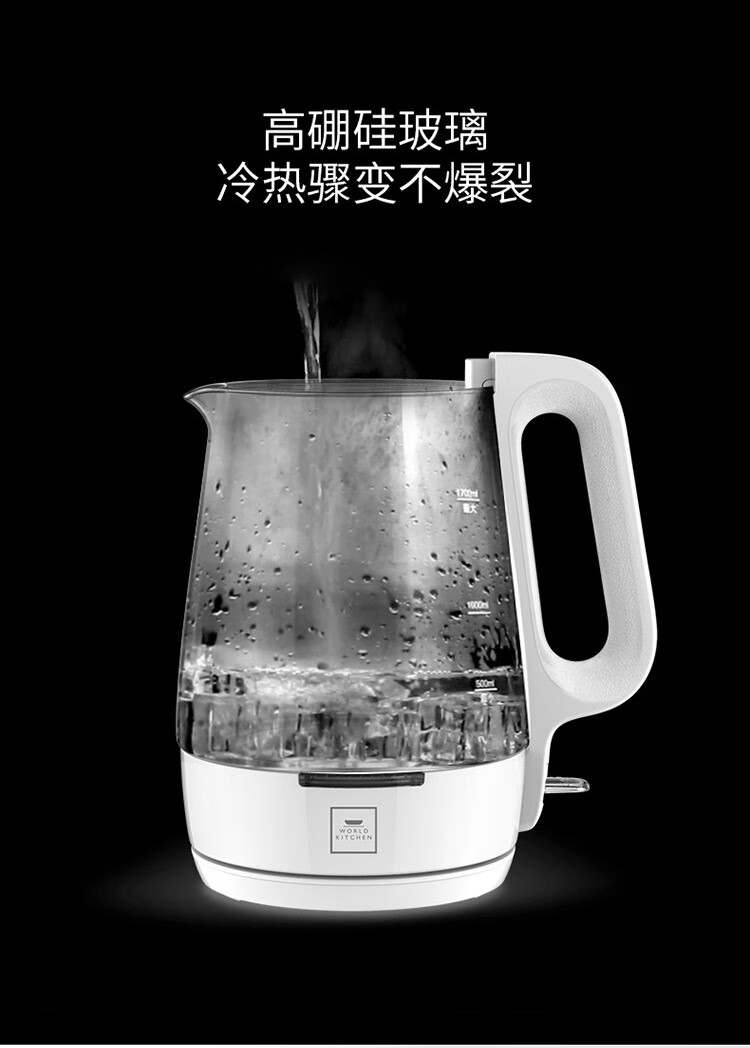 WORLD KITCHEN玻璃电热水壶高硼硅玻璃 冷热骤变不爆裂 WK-KT17L/KZ白色