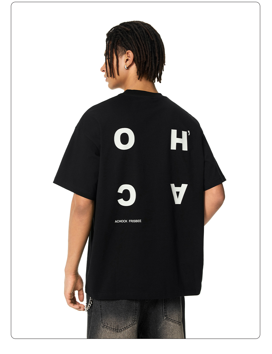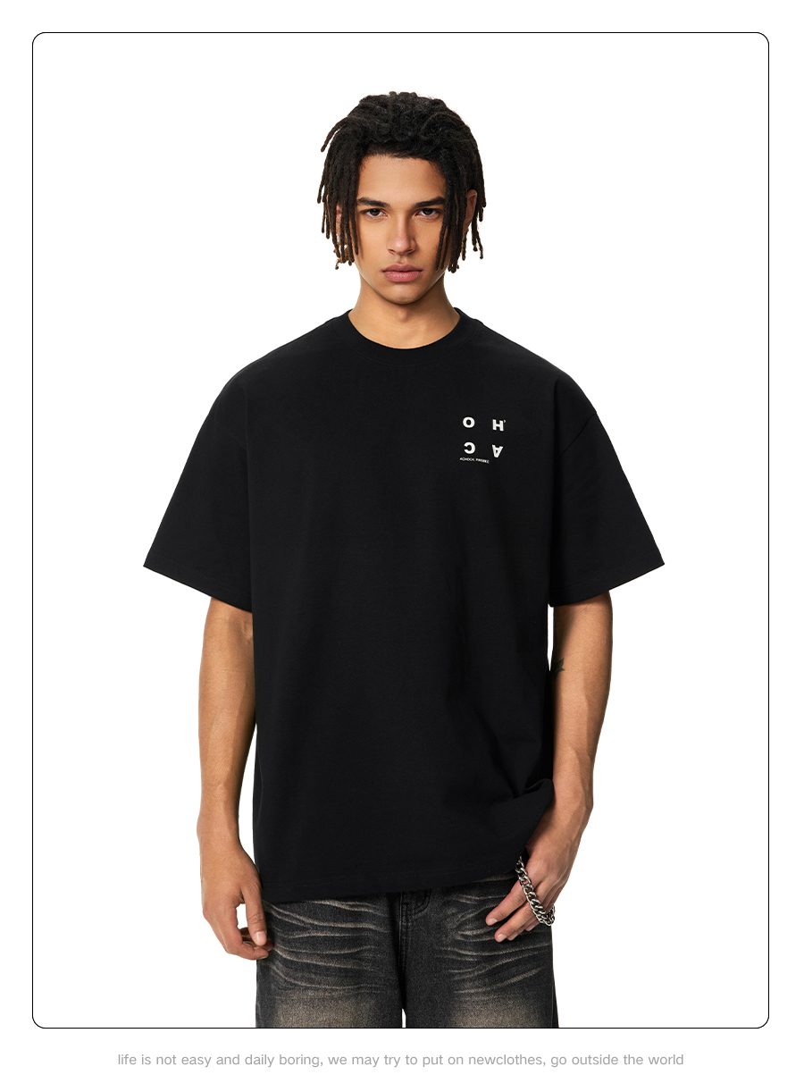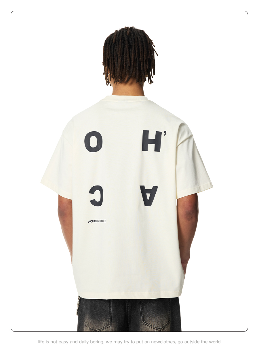 【Achock官方店】美式设计logo短袖男女高街夏短袖情侣五分袖t恤