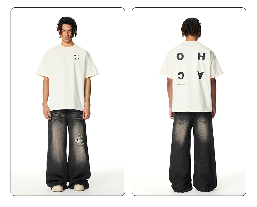 【Achock官方店】潮牌复古潦草logo印花t恤美式宽松休闲情侣短袖