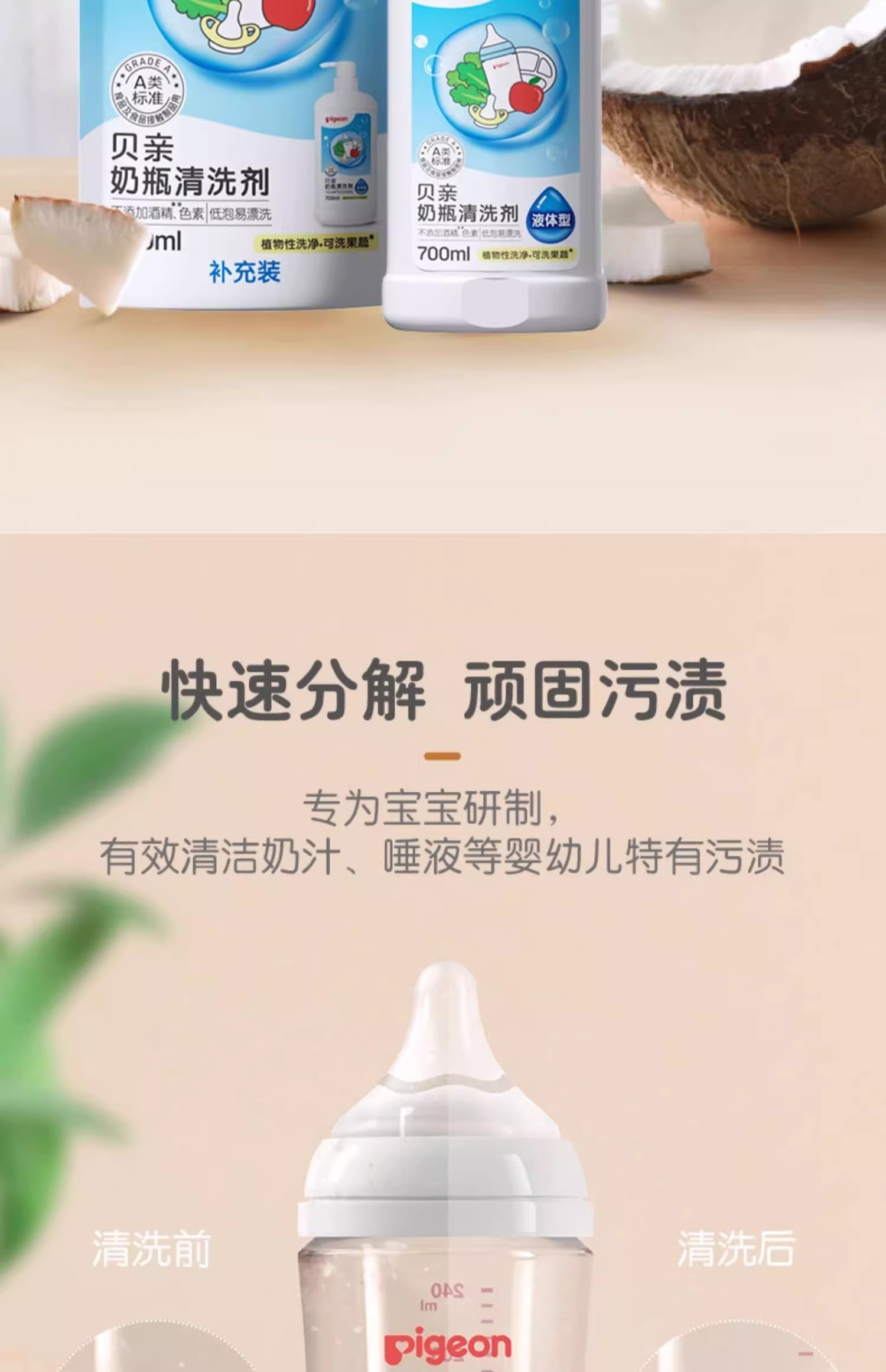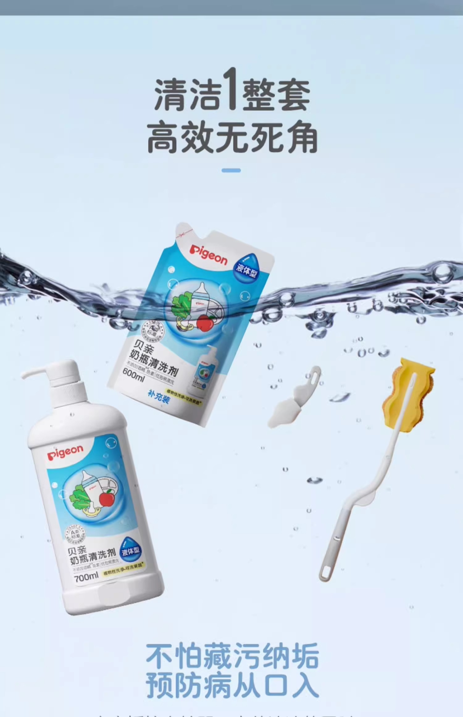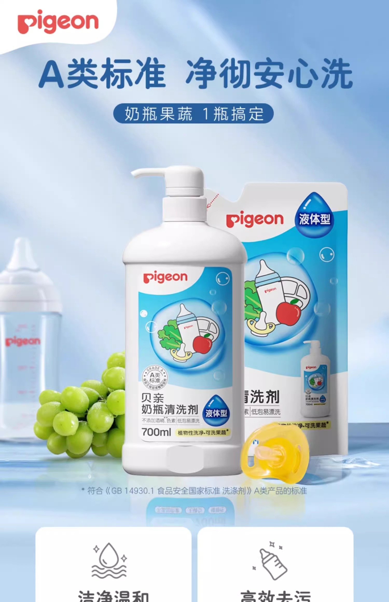 【官方自营】 PIGEON/贝亲婴儿奶瓶清洗剂实惠家用装1300ml
