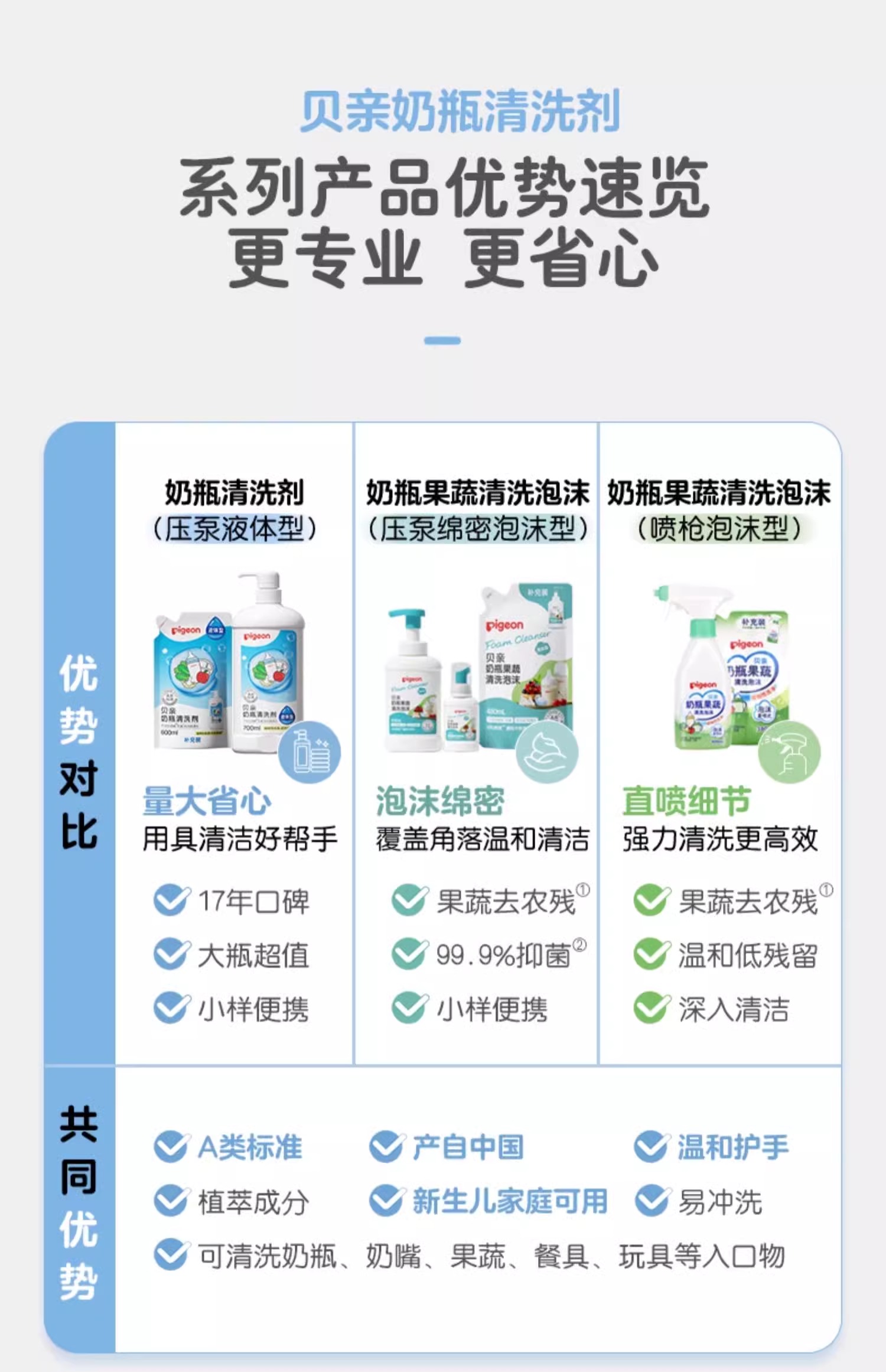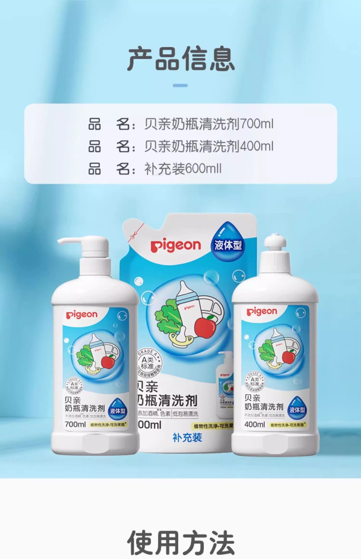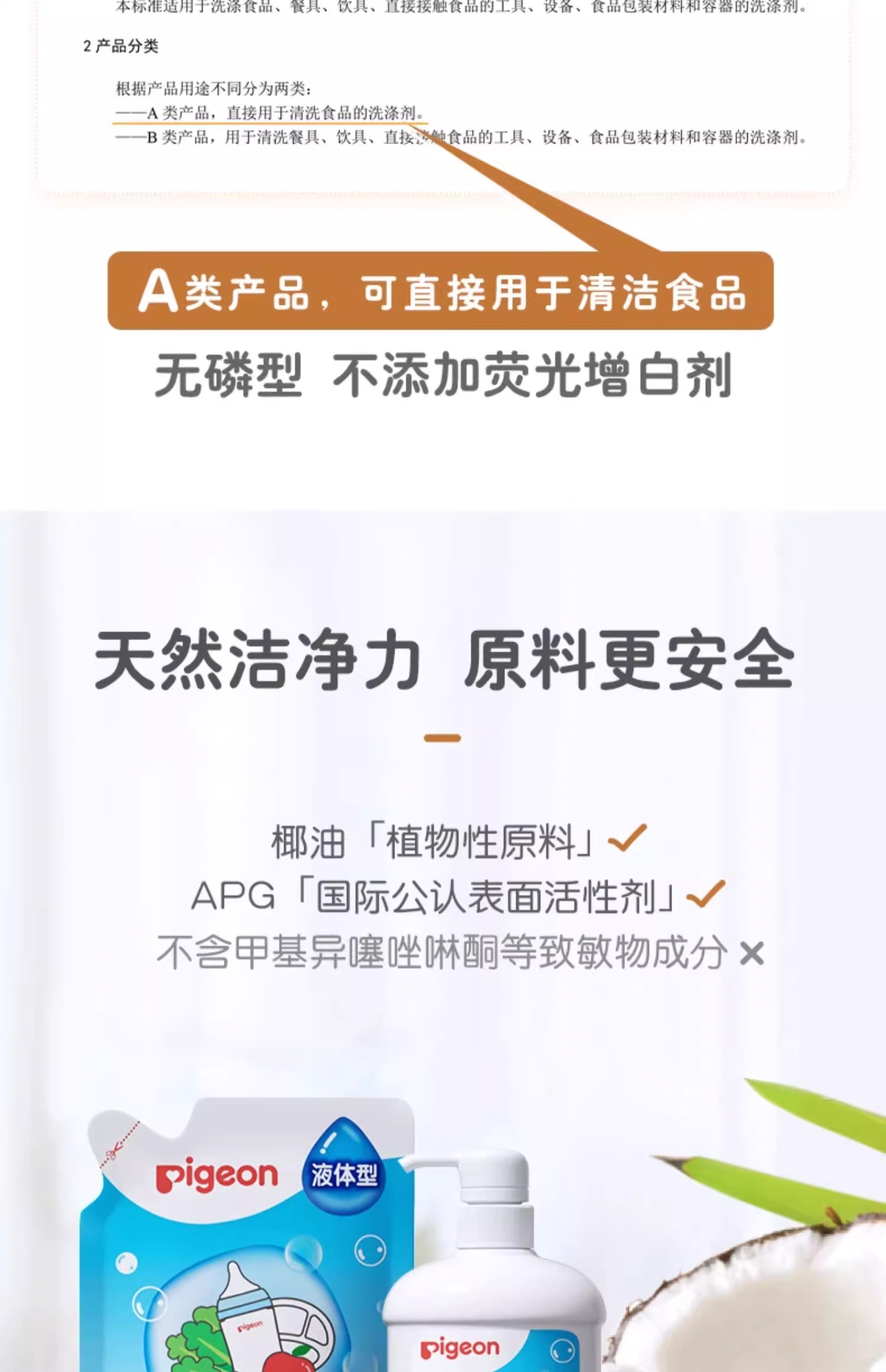 【官方自营】 PIGEON/贝亲婴儿奶瓶清洗剂实惠家用装1300ml