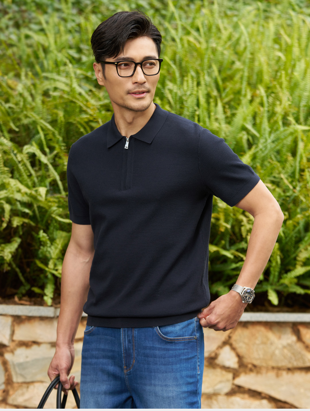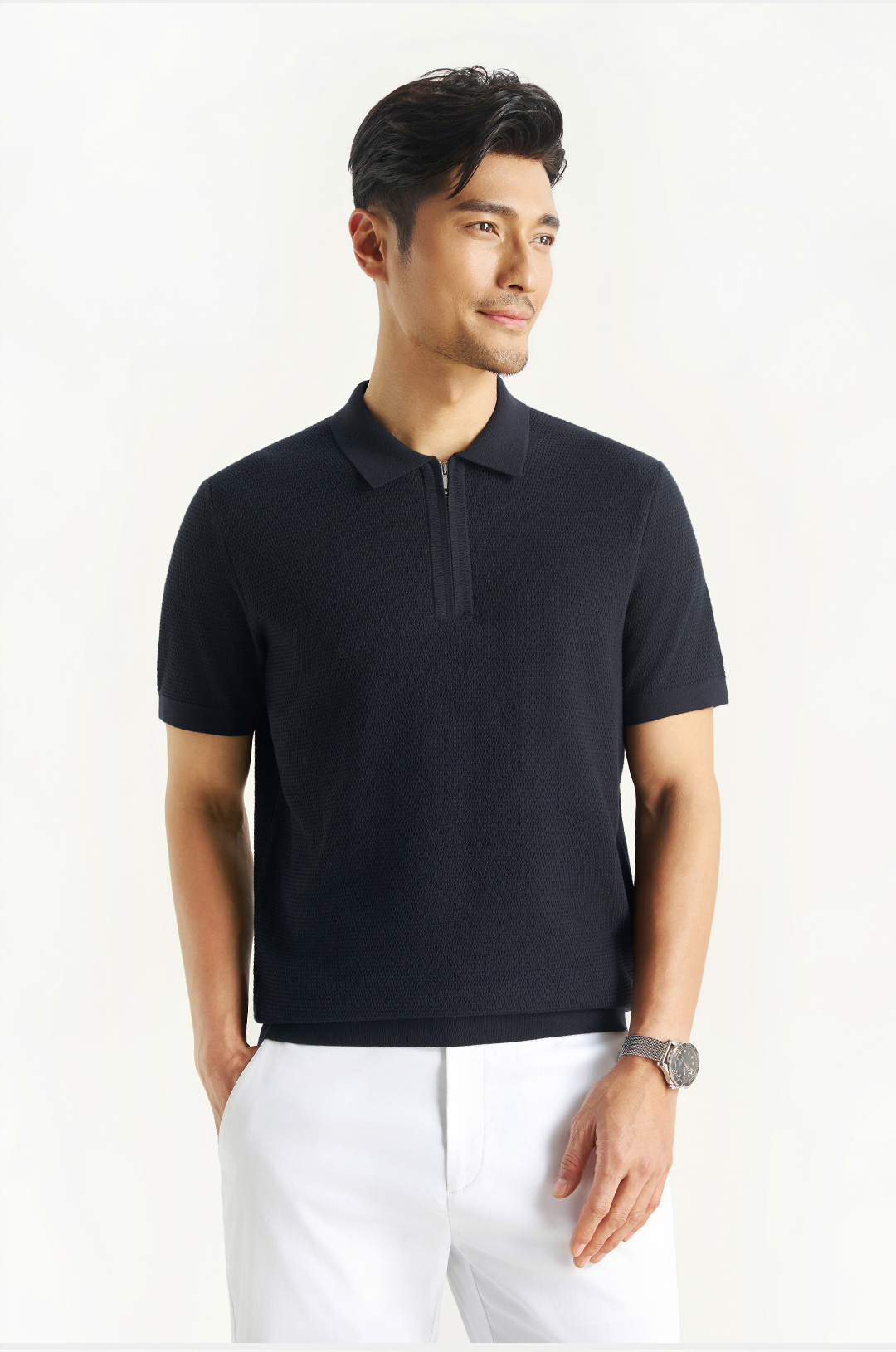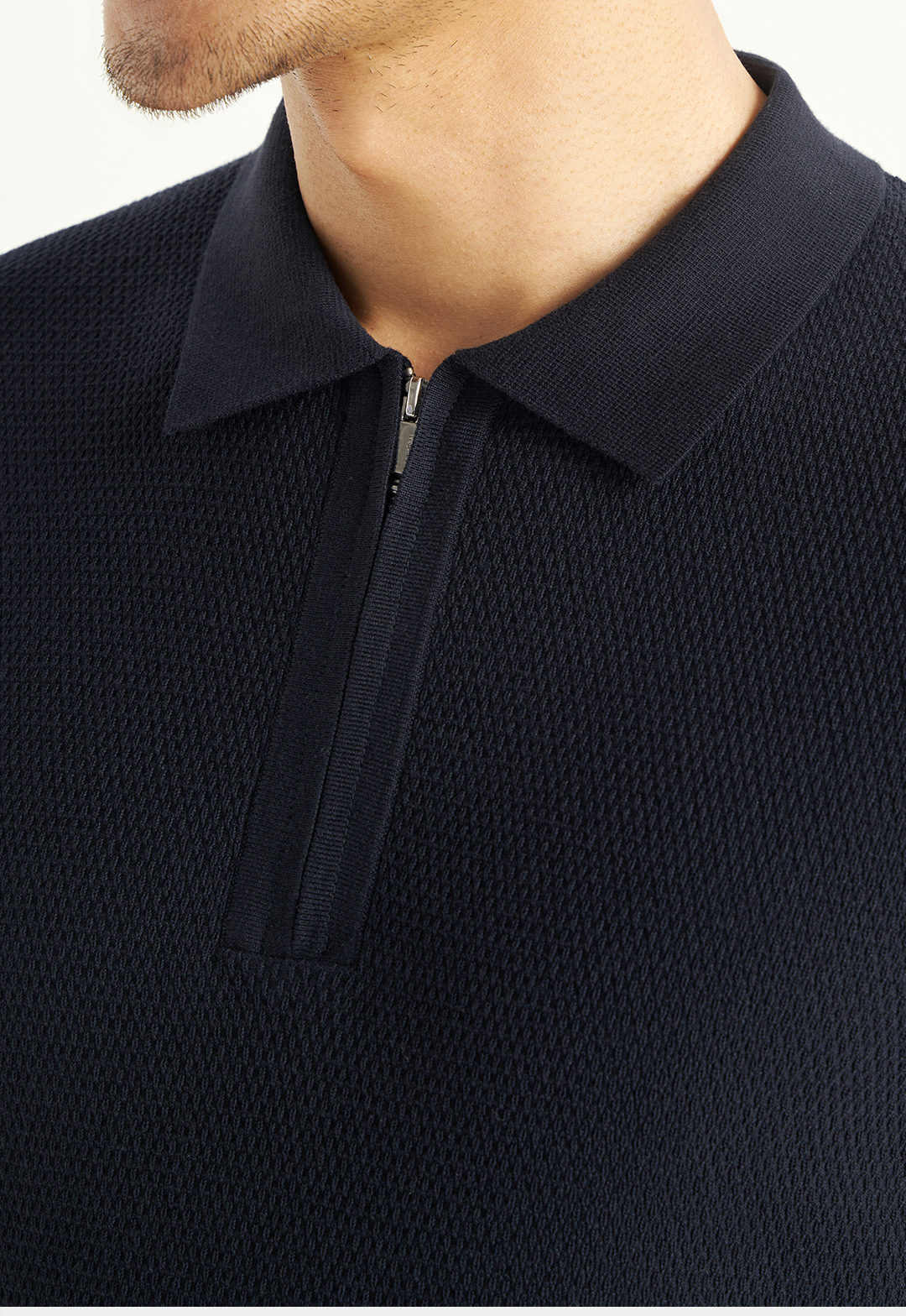 【柔感六号】斯托尔横机长绒棉拉链半开针织POLO衫255Y0P917S