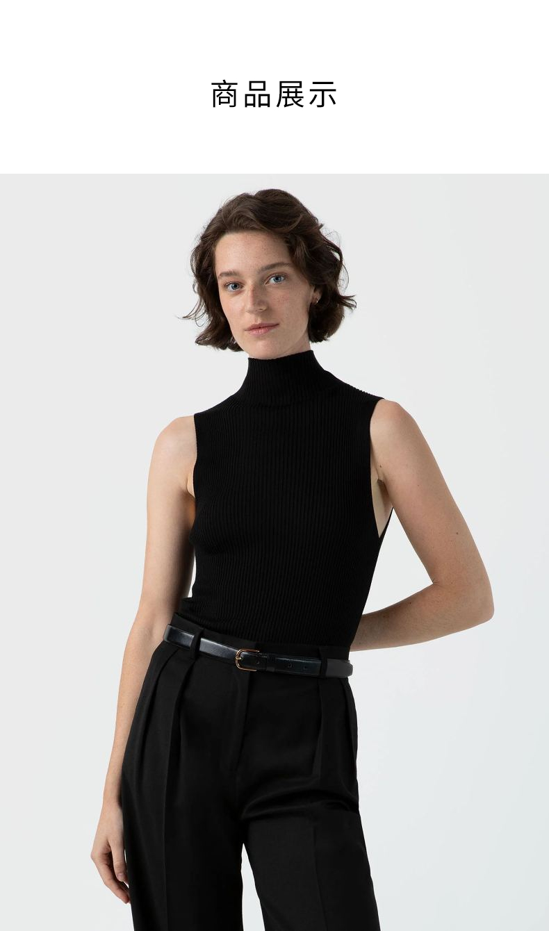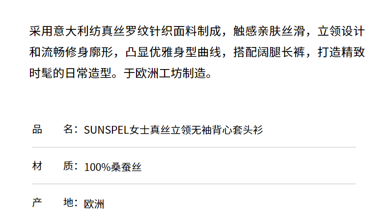 SUNSPEL女士桑蚕丝真丝立领无袖针织背心