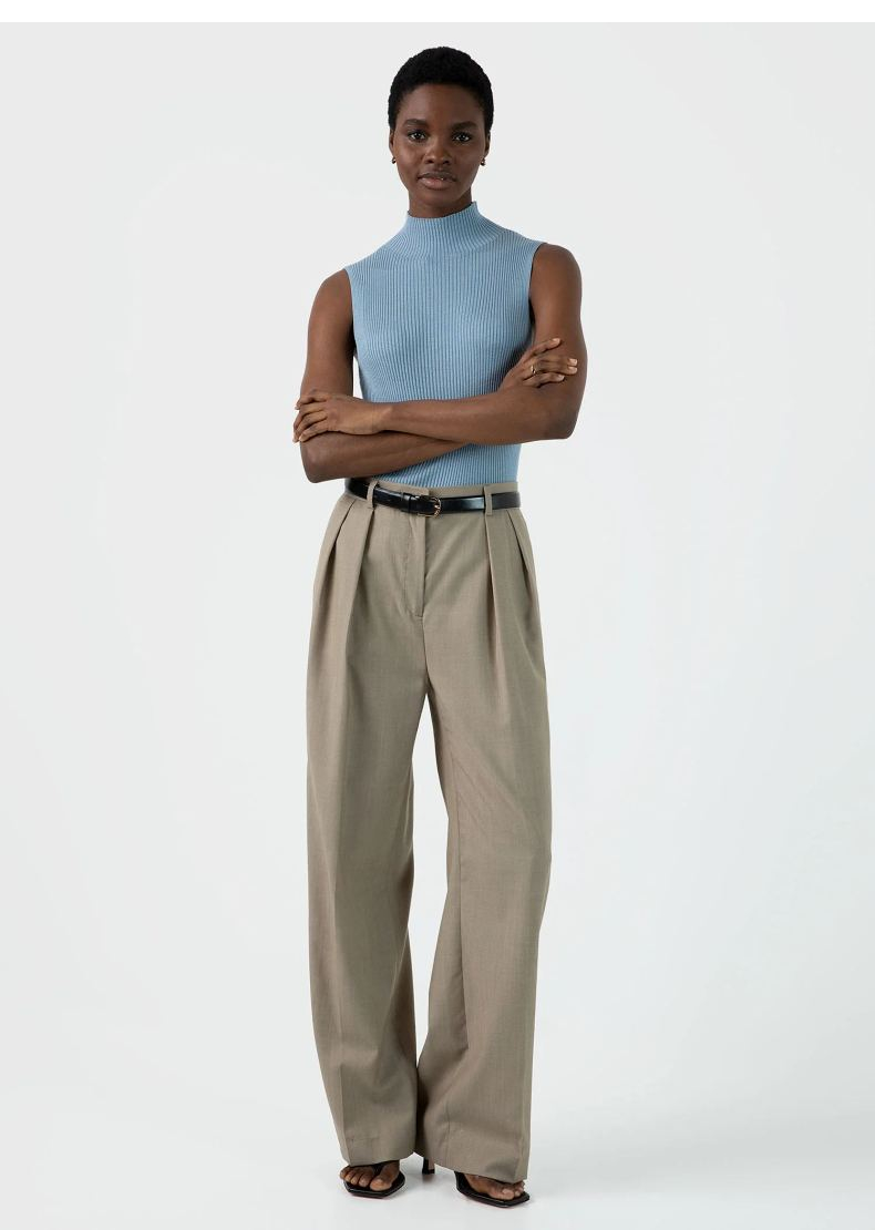 SUNSPEL女士秋冬精纺美利奴羊毛阔腿裤通勤日常小黑裤