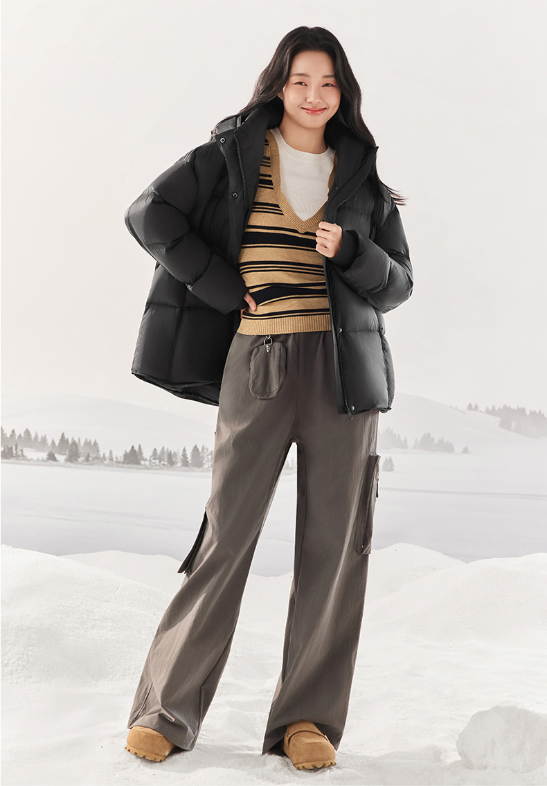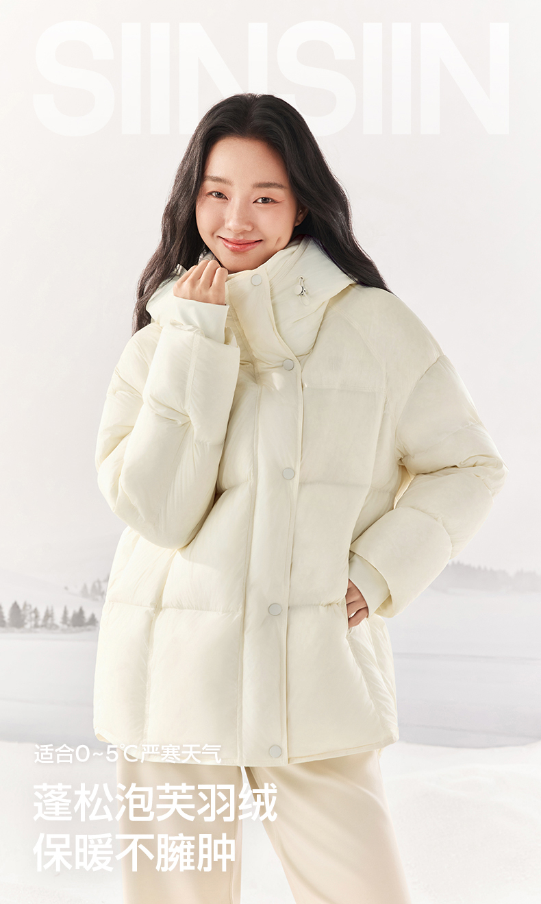 SIINSIIN泡芙羽绒服冬季中长款保暖加厚时尚连帽云朵面包服外套