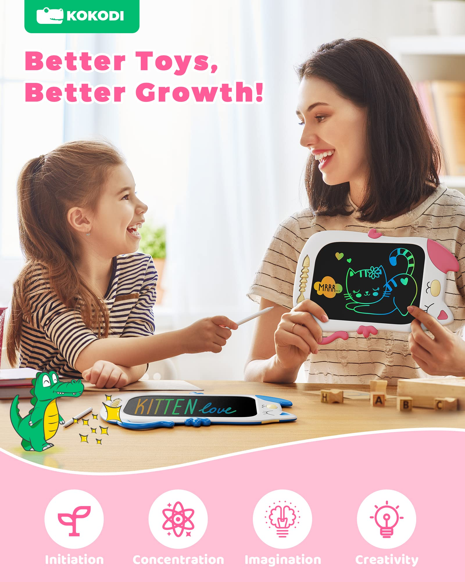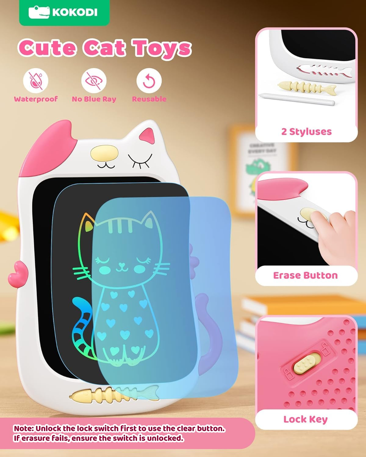 采用独特的猫咪卡通造型,是培养女孩创造力与想象力的绝佳学习绘画玩具,让孩子自由释放天性,享受绘画、数数、拼词等乐趣。